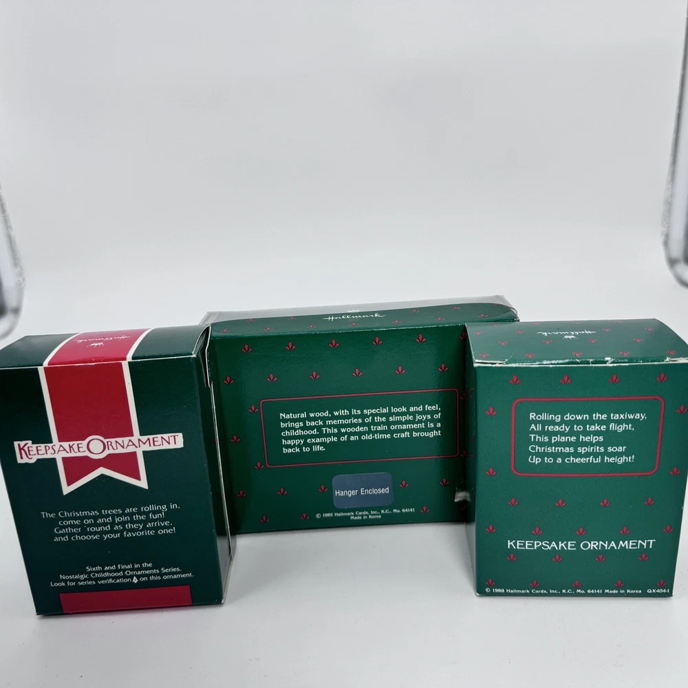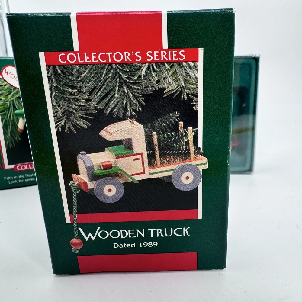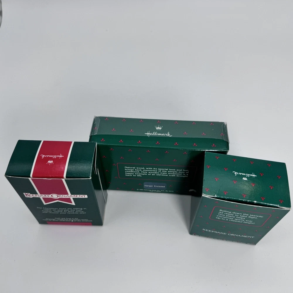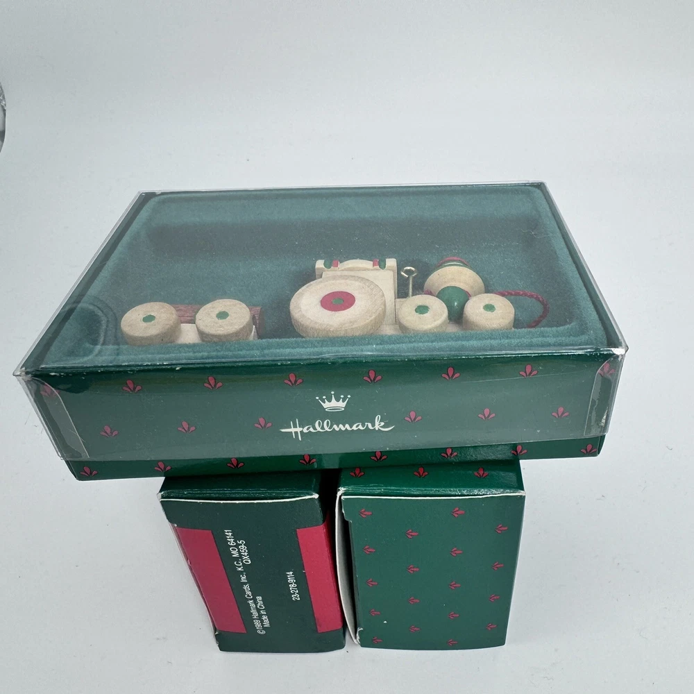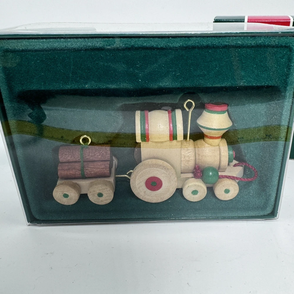 Crafted with care, this Hallmark Wooden Train Truck Plane Pull Toy Ornament lot harks back to the whimsical era of the 1980s. With a classic wood style that evokes the nostalgia of childhood, these pieces are not just ornaments but a vintage collection that celebrates the joy of transportation themes.