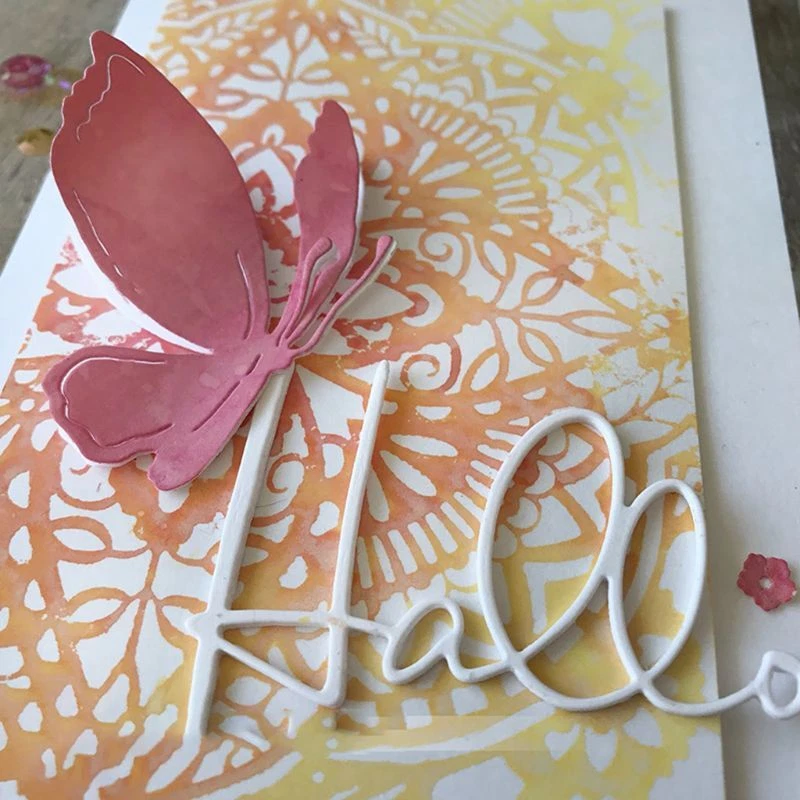 Hallo Metal Cutting Dies Stencil Scrapbooking DIY Album Stamp Paper Card Emboss and high Features: This dies stencil template is carbon steel You can use this die to create incredible shapes from your favorite cardstock and paper, allowing your card and scrapbook designs to be totally unique A good your kids to cultivate their hands-on ability Your self-made will be a big surprise to your for scrapbooking, card making, paper theme invitations, pocket scrapbooks, album decoration, photo frame Specifications: Carbon Steel Dimension: app.7x4.9cm/2.76x1.93in Color: Silver Pattern: Hallo Quantity: 1 Pc Note: No retail package. 1cm=10mm=0.39inch. Please allow 0-1cm error due to manual measurement. pls make sure you do not mind before you bid. Due to the difference between different monitors, the picture may not reflect the actual color of the item. Thank you! Package includes: 1 x Dies Stencil (other accessories in the picture is not included.)