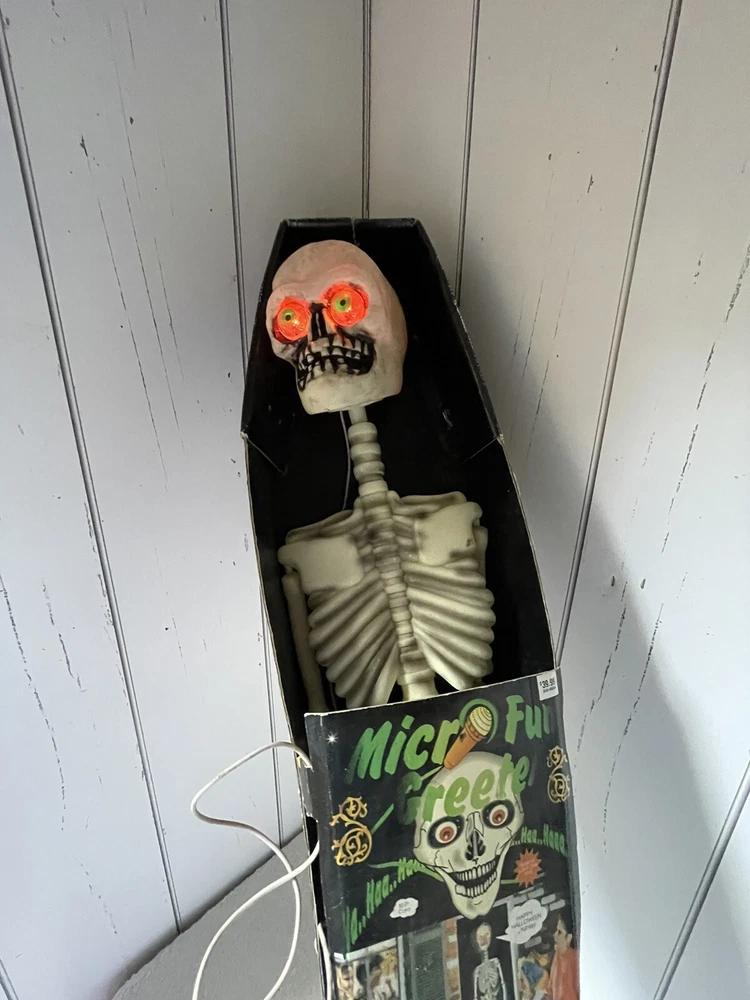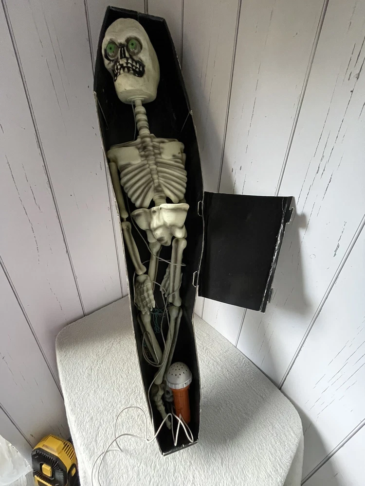 Halloween Animated Hanging Prop Skeleton Microphone Battery Operated. Condition is New. Shipped with USPS Ground Advantage.