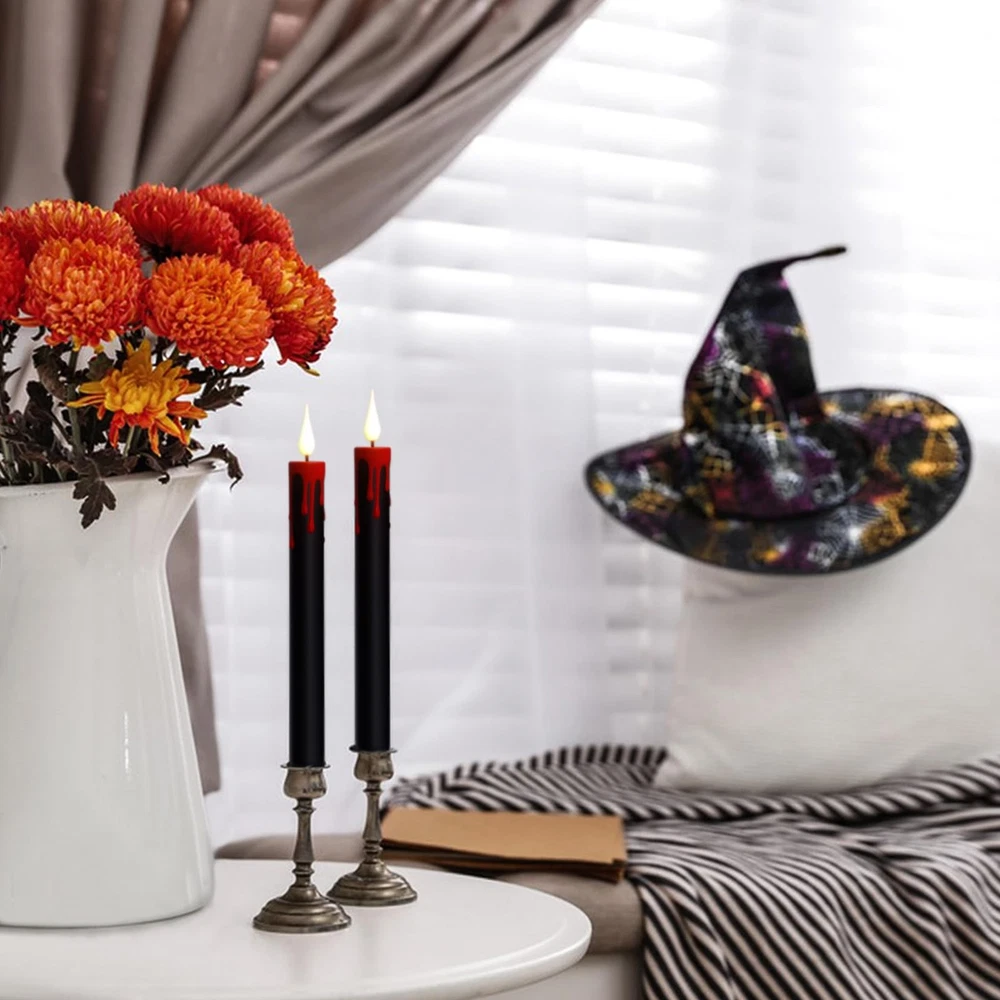Halloween Black Flameless Taper Candles with Remote Timer and Battery Operation