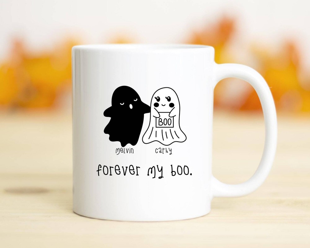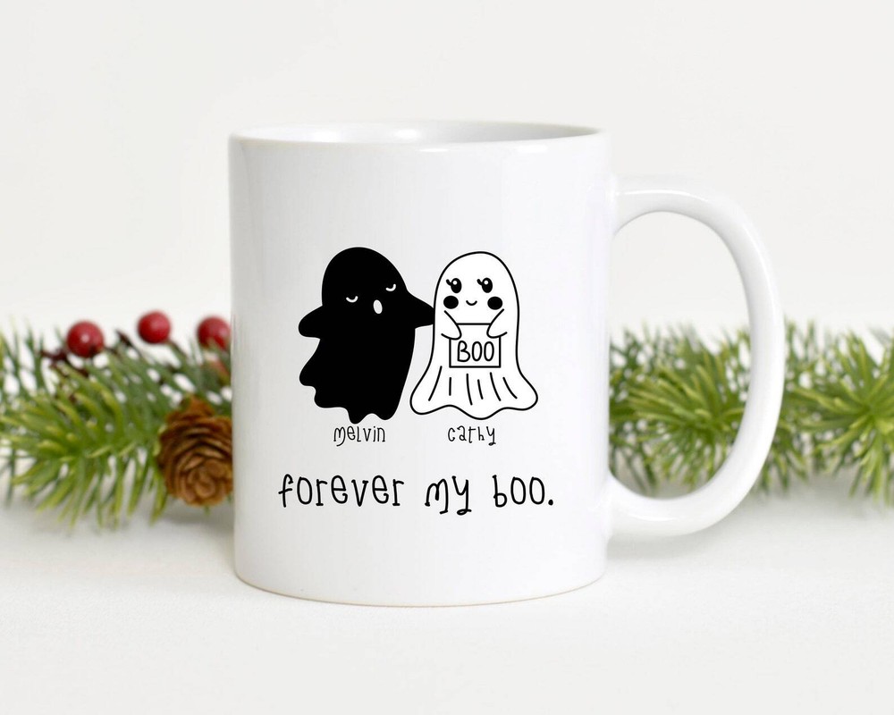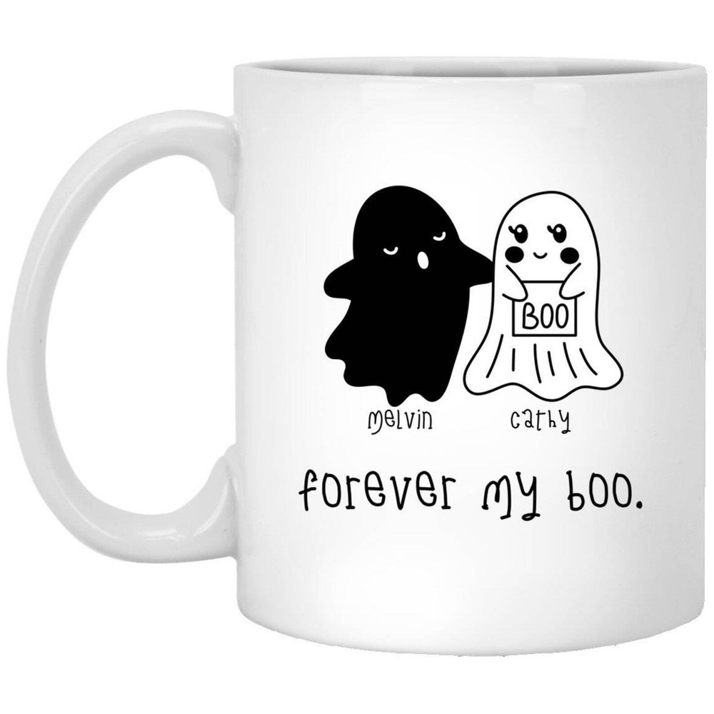 Forever My Boo Mug Halloween Couple Mug Personalized Halloween Couples Mug For Him Her Boyfriend Girldfriend Husband Wife Anniversary Gift Product Details.. This high quality 11oz. ceramic white mug has a premium hard coat that provides crisp and vibrant color reproduction sure to last for years. Perfect for all hot & cold beverages. The highest quality printing possible is used. It will never fade no matter how many times you wash it. Material: 100% Ceramic. Print both sides. Dishwasher and Microwave Safe. High Gloss + Premium White Finish. Printed in the U.S.A. Personalized & Custom. We support personalized and custom mug to add custom, when placing an order, you can add notes to the "order note" in shipping address section. Also you can contact us directly via message. Shipping Info. Ready to ship in 1 to 2 business days, All products are made-to-order and proudly printed in the United States. Shipped by USPS and DHL, You will receive your order in 5-7 days. Replace & Refund. All products are defective during shipping broken, chipped will be replaced free of charge. You are not satisfied with the product, we will refund 100% money to you. If any other issues arise, please do not hesitate to message, we would be more than happy to assist you.