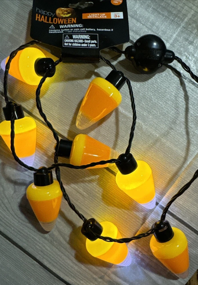 Get into the spooky spirit with this Halloween Flashing Necklaces LED Lights Candy Corn Jumbo Halloween Necklace. Perfect for any Halloween occasion, this multicolor necklace is made of plastic and features LED lights that create a spooky ambiance. Whether you are dressing up for a Halloween party or just want to add some spooky vibes to your outfit, this necklace is a must-have. GT002>017