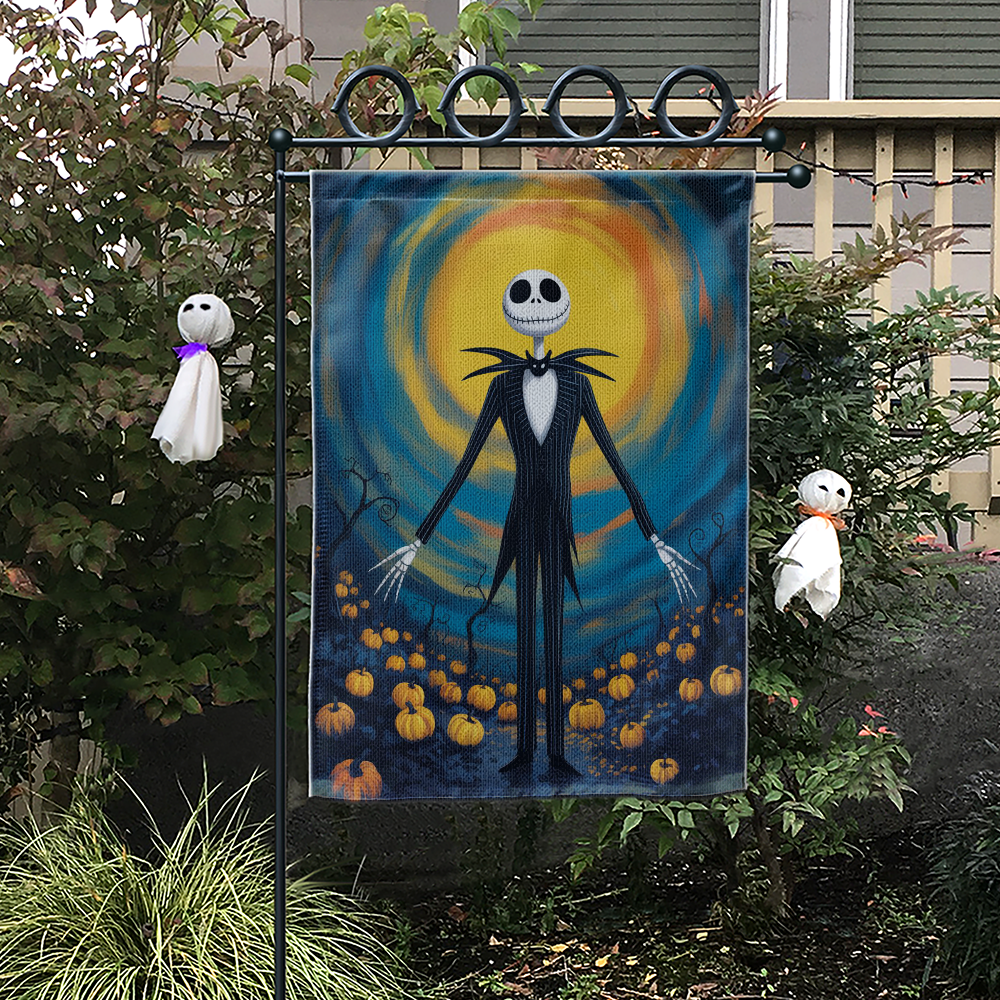Give your outdoor décor a spooky seasonal upgrade with this Halloween garden flag! The design features a skeleton figure standing in a glowing pumpkin field, under a swirling night sky with a large full moon , creating the perfect eerie yet festive display for the season. Available Sizes: 12 x 18 in (small garden flag) 28 x 40 in (standard house flag) 36 x 60 in (large banner) Features: Made of durable, weather-resistant fabric Double-sided print with vivid, fade-resistant colors Fits most standard garden flag stands and poles Perfect for gardens, patios, porches, and Halloween parties A spooky seasonal gift idea for friends and family Light up your yard with eerie charm using this skeleton and pumpkin Halloween garden flag!