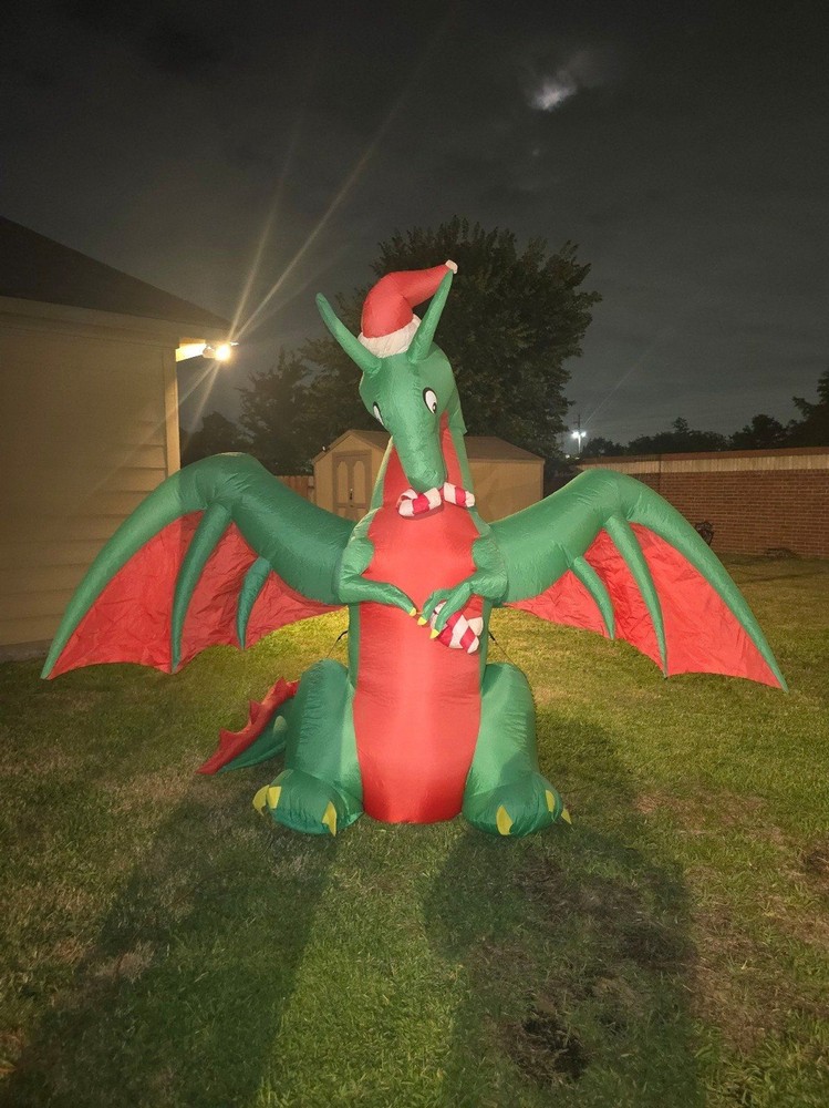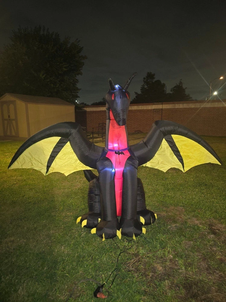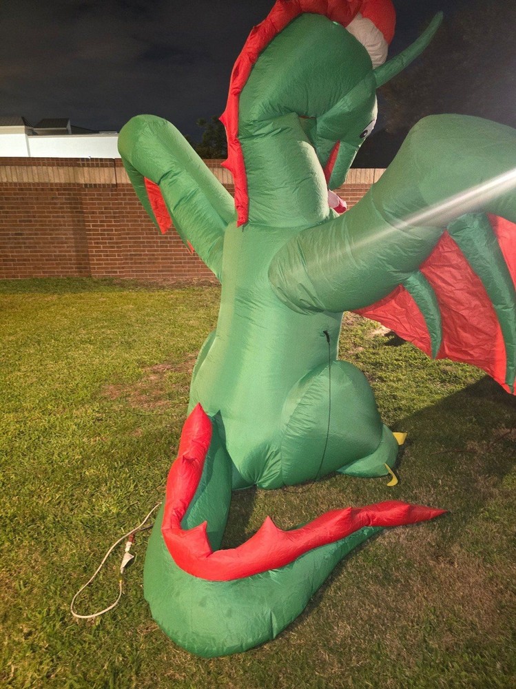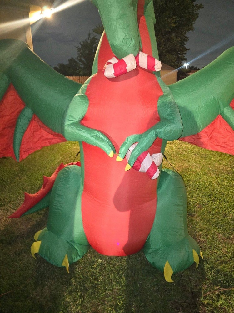 SOLD TOGETHER. Thank you for understanding Video attached https://youtube.com/shorts/DOk2-W8brHY?si=eHIAHy--Rzs_tj2S 8ft Inflatable Christmas Dragon with Candy LED Lighted Blow Up NOT INFLATING PROPERLY NOT SURE WHAT'S WRONG WITH IT USE Halloween Gemmy 7.5 ft Red & Black Winged Dragon Airblown Inflatable USE Gemmy Airblown Inflatable LED Black and Orange Winged Dragon USEall