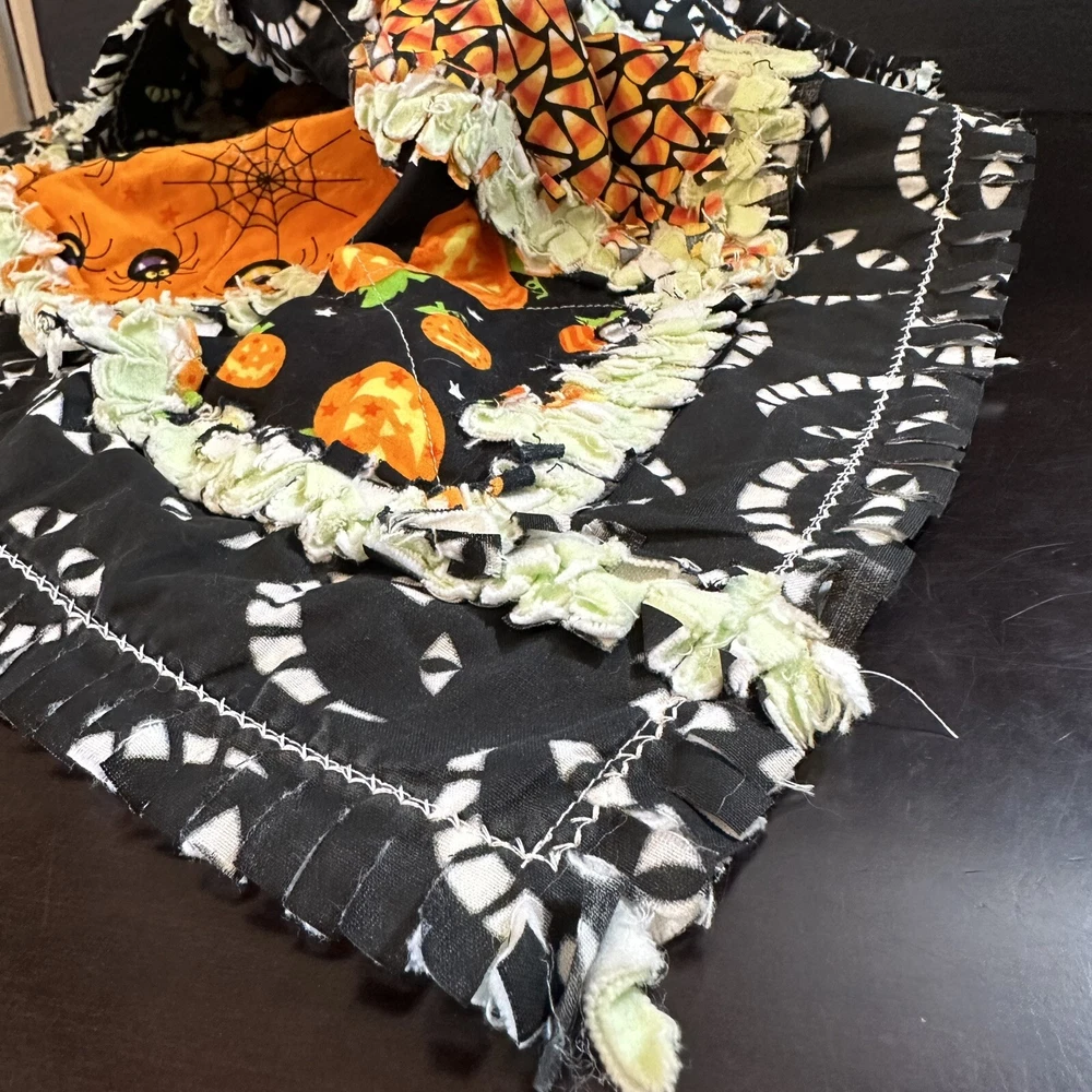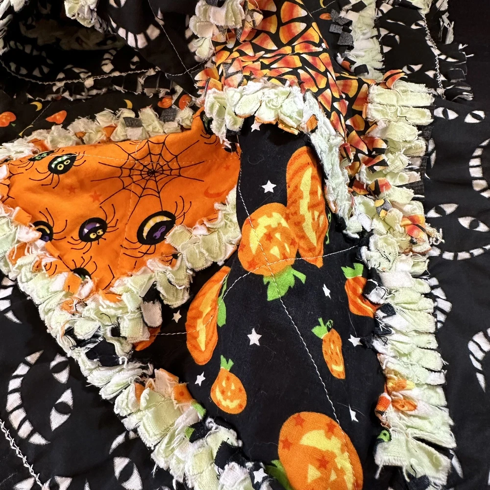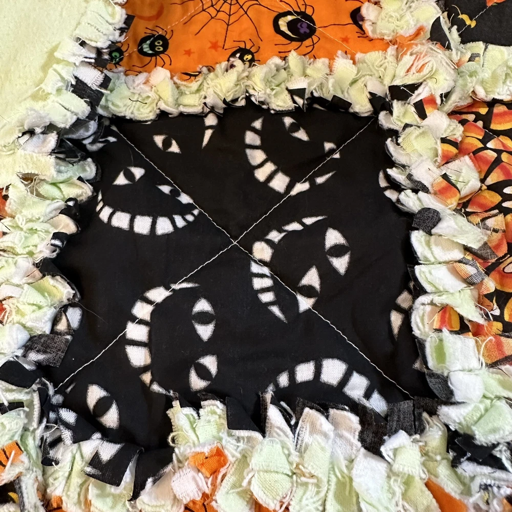 Halloween Handmade Quilt Spiders Candy Corn Jack-o-Lantern Moon 24” X 24”. Condition is Used. Shipped with USPS Ground Advantage.