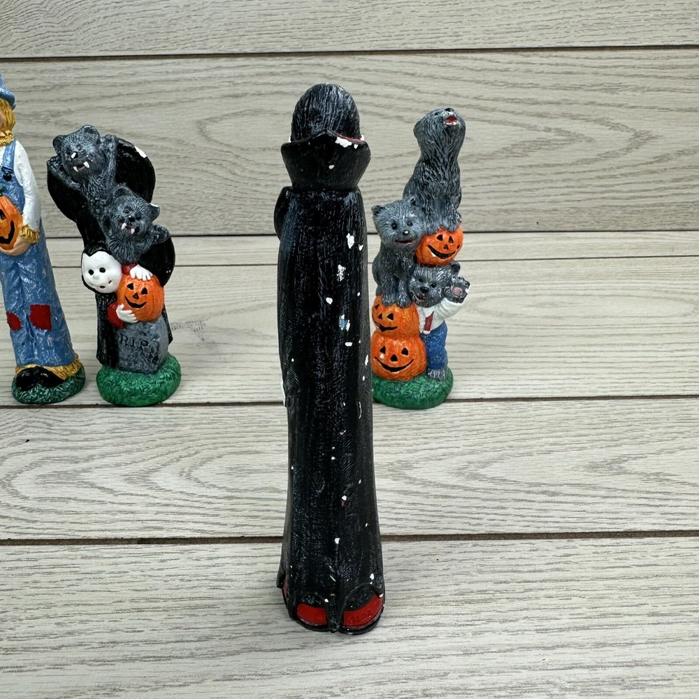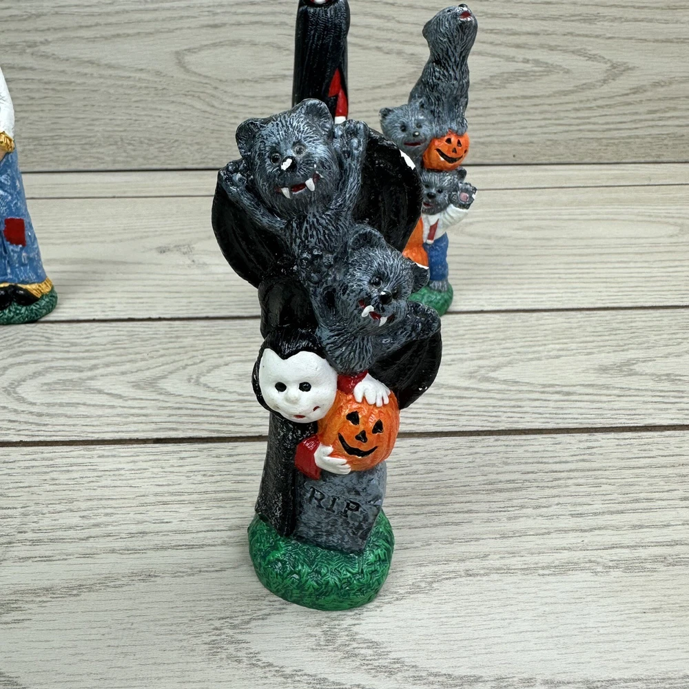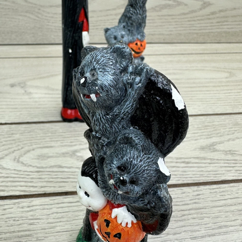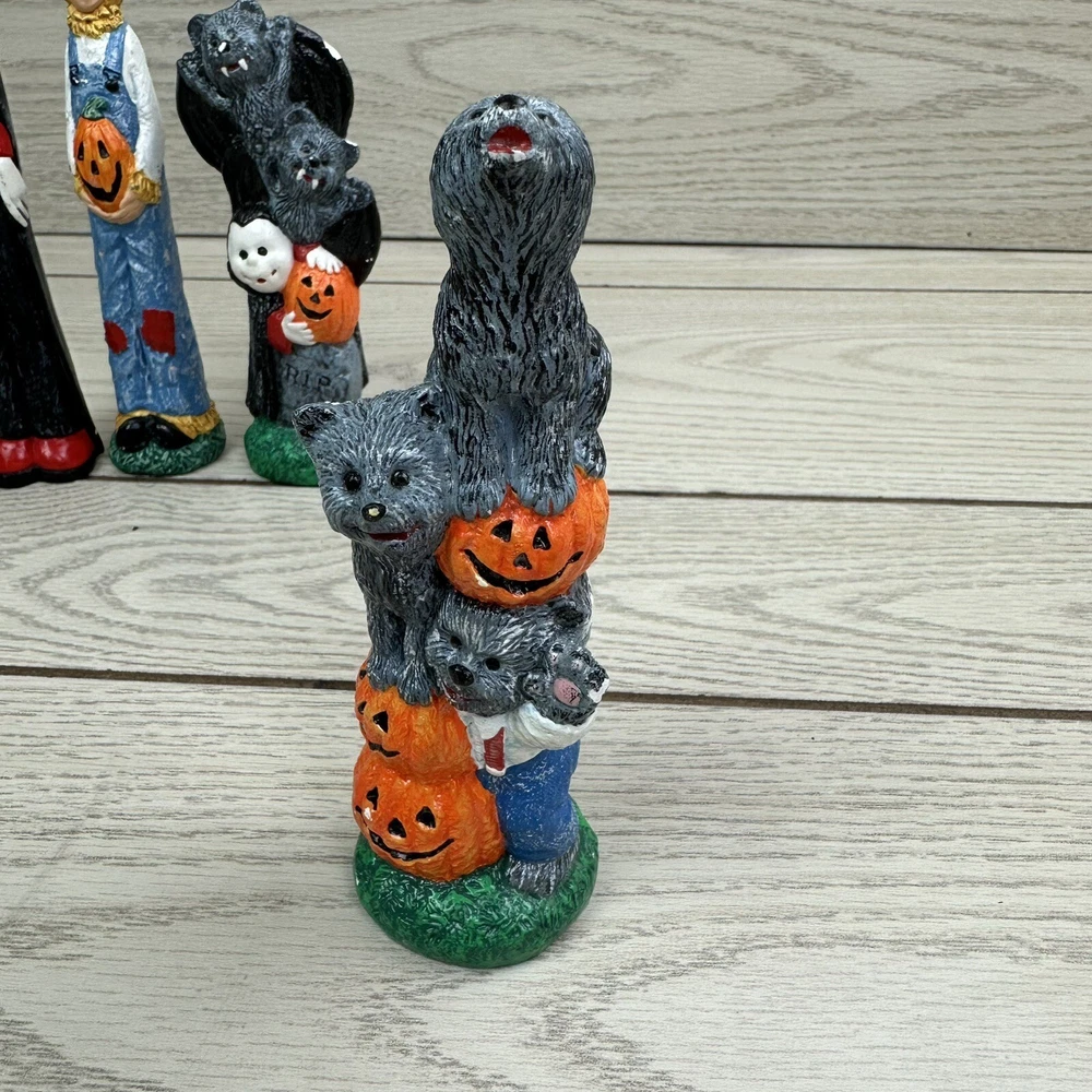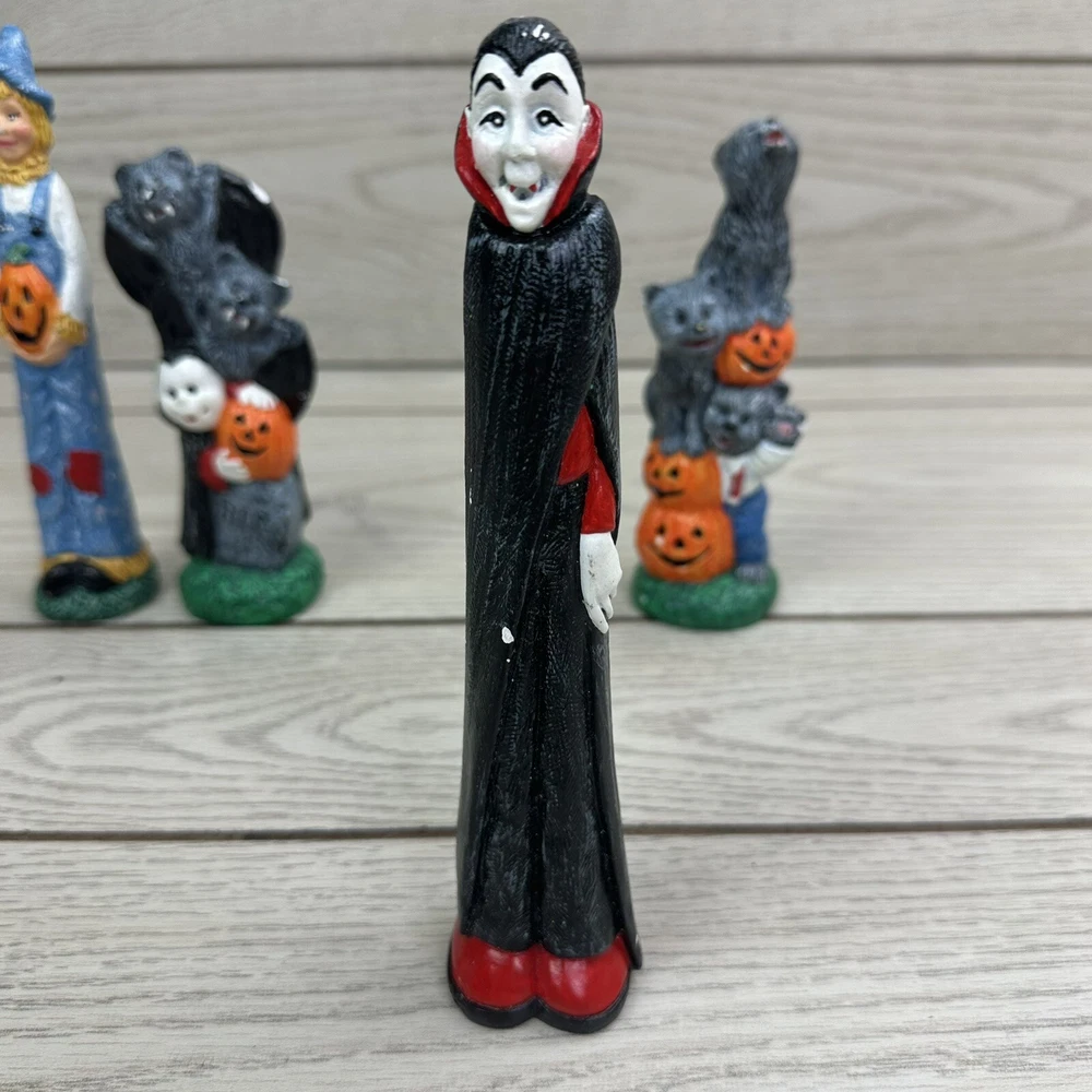 Get ready for Halloween with these spooky pencil figures! Featuring bats, wolves, a vampire, and a scarecrow, these handmade ceramic and plastic figurines will add a haunting touch to your holiday decor. Perfect for collectors of Halloween memorabilia, these unique items were crafted in the early 2000s and come from an unknown country or region of manufacture. Whether you're decorating your home or office for Halloween, these multicolored pencil figures are sure to be a hit. Use them as props for your Halloween party or display them on your desk for a festive touch. Don't miss out on the opportunity to add these one-of-a-kind collectibles to your collection.