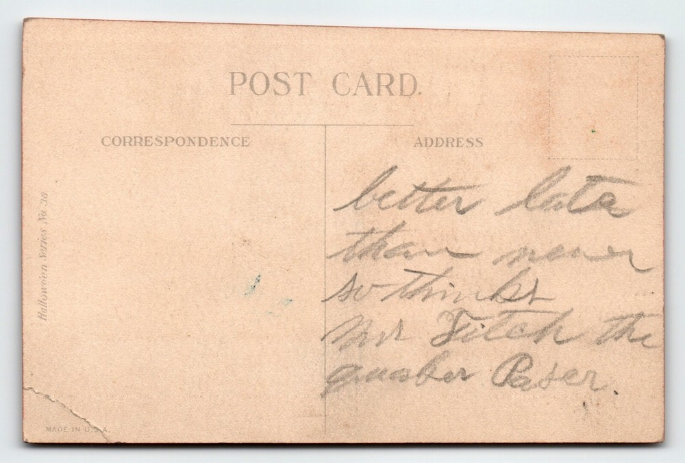 Non posted. Antique original vintage post card. Has crease, corner dings, and age wear. Stock #hal154. Additional postcards are in our store. All post cards are old originals and may or may not have writing on back. Bundle and save by using cart and making single payment. Additional old Halloween postcards are in our store. Bundle and save. Vintage Halloween Collectibles Make Great Holiday Gifts!