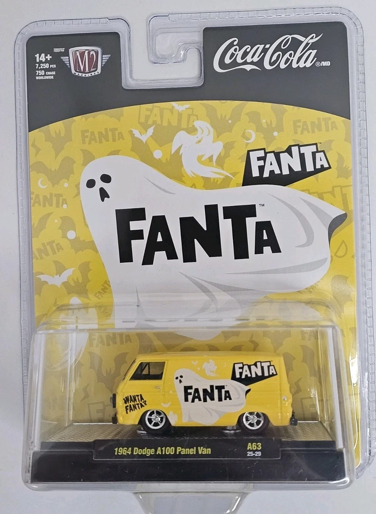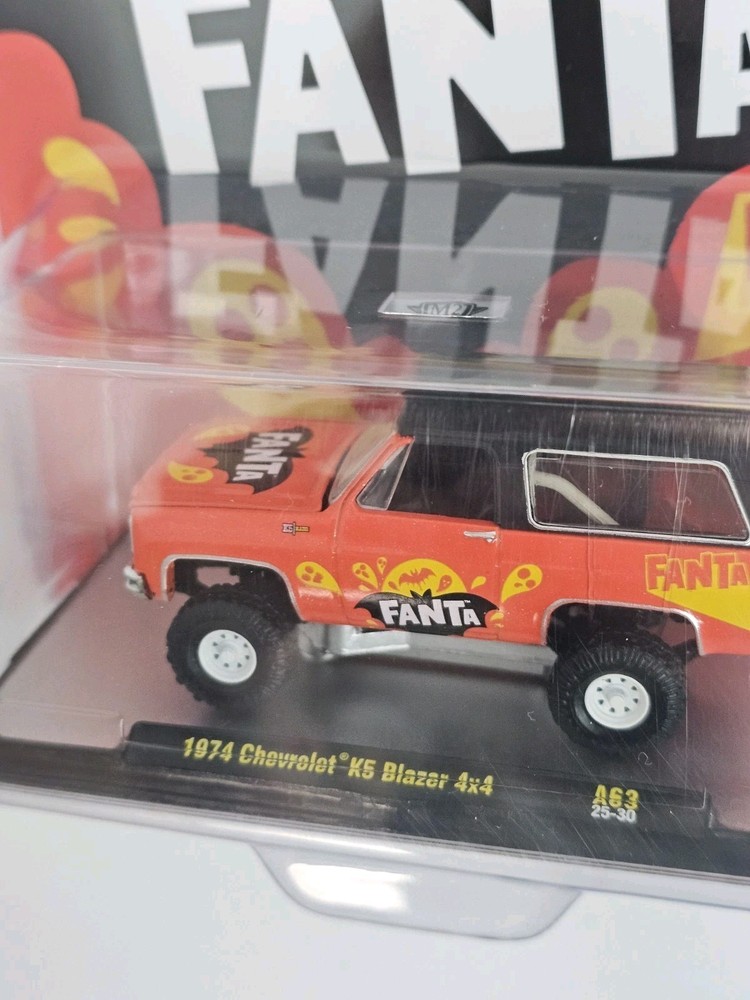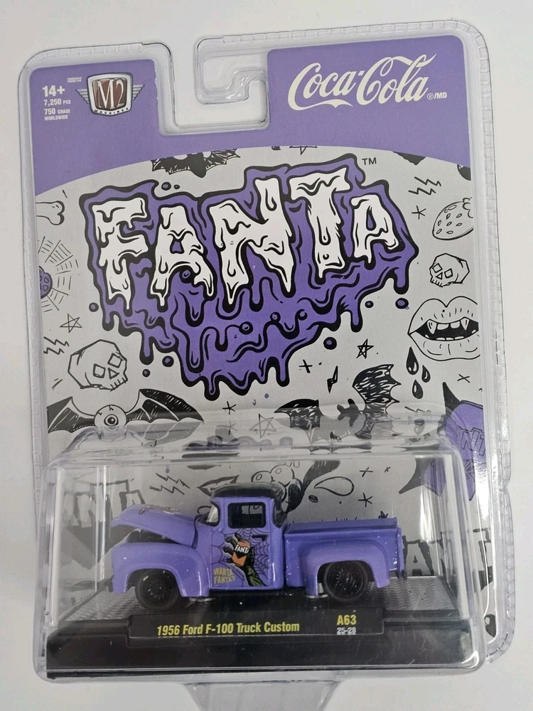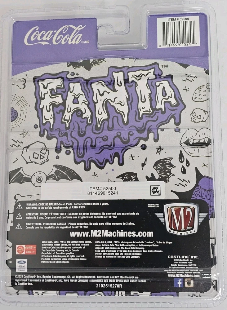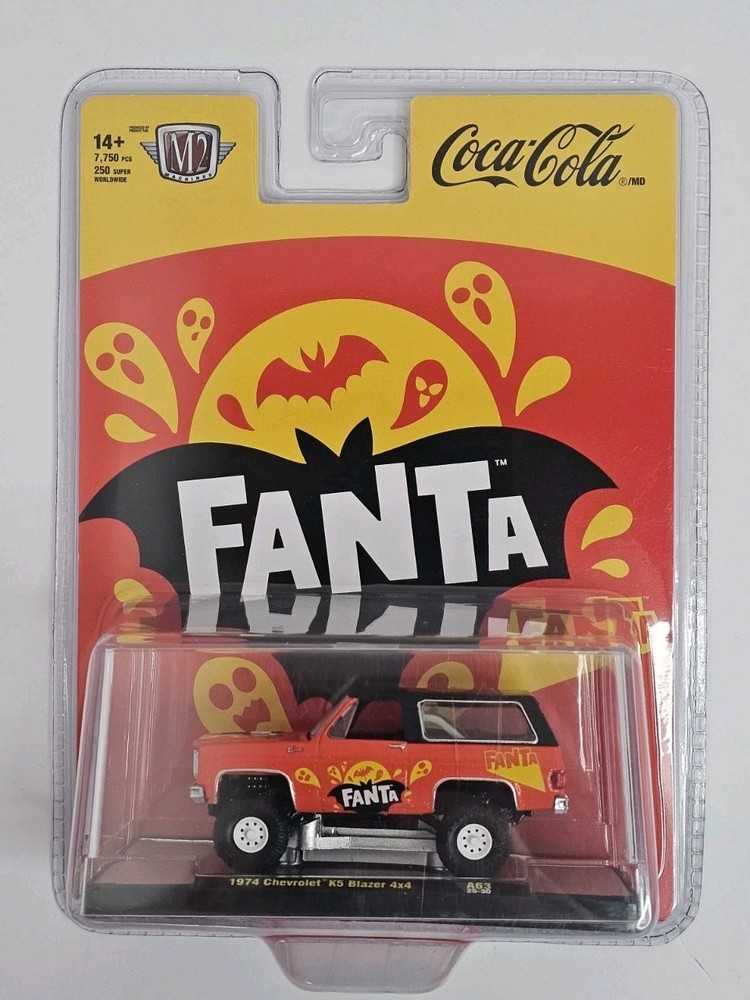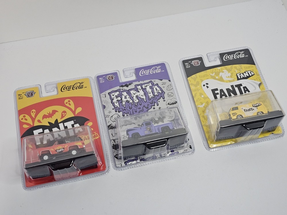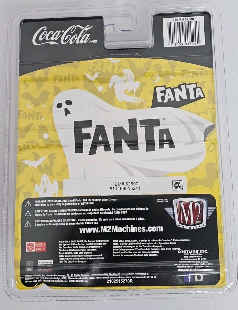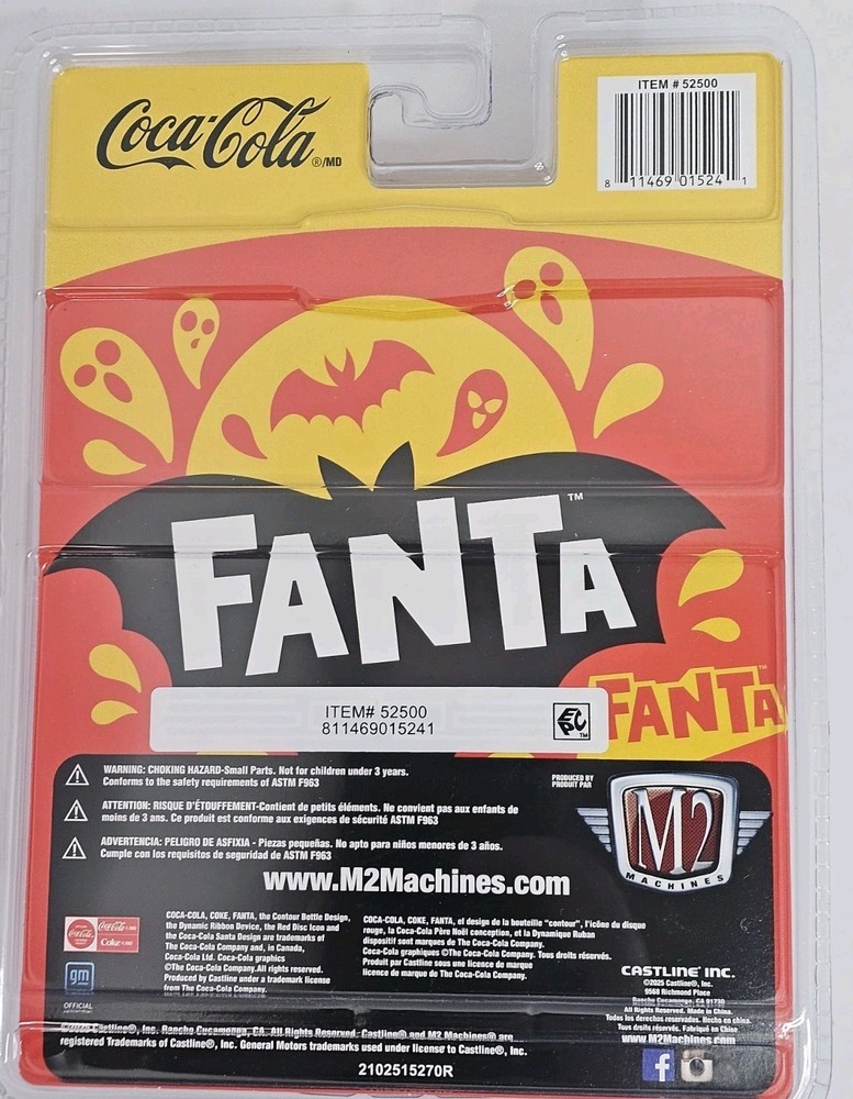 The Halloween M2 Machines Lot of 3 Coca-Cola Fanta '65 Ford '74 Blazer '64 Dodge Van features diecast vehicles in 1:64 scale, perfect for collectors and car enthusiasts. This limited edition set includes a red '56 Ford F-100 with Coca-Cola theme branding, a '64 Dodge Van, and a '74 Blazer, all in unopened boxes with special features like a stand and advertising specimen status. With a recommended age range of 13 years and up, this set appeals to both boys and girls who enjoy collecting contemporary manufactured toy vehicles.