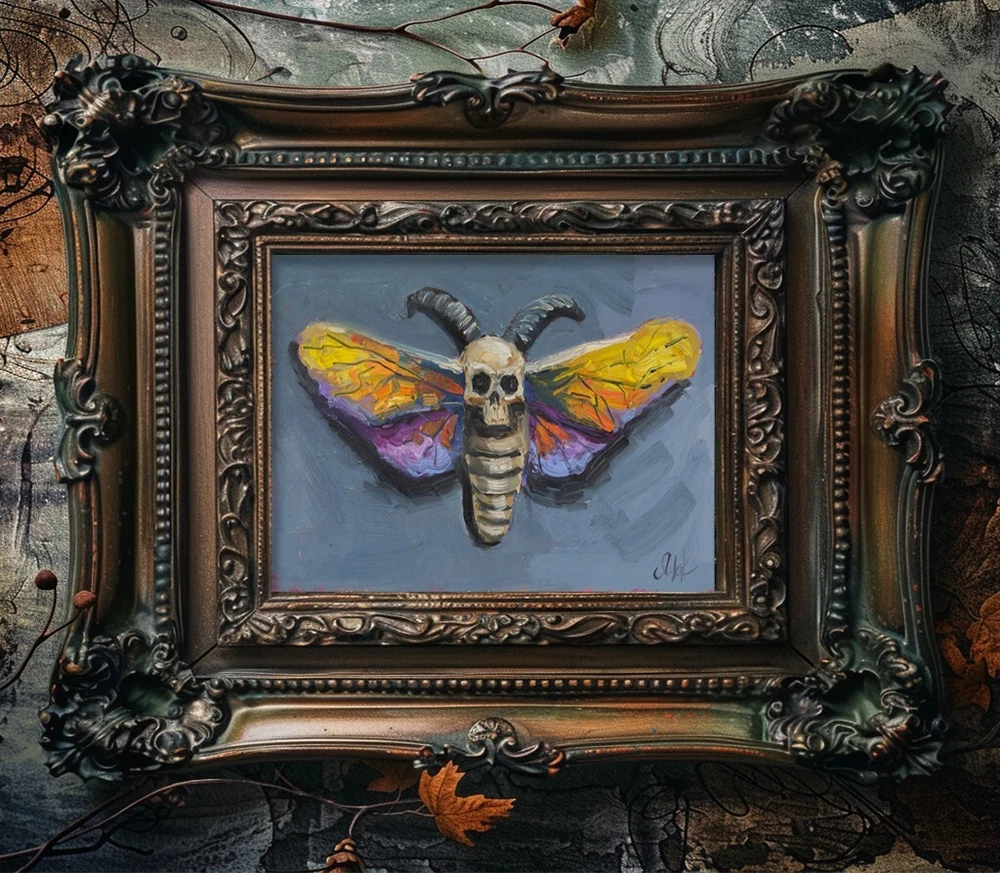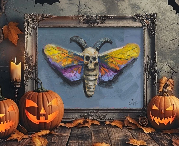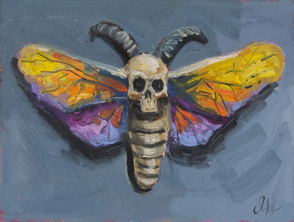 Halloween Oil Painting Head Moth Original Wall Art Butterfly Wall Decor Skull Artwork Hawk Moth Original oil painting by Nataly Mak ♥ Without frame ♥ Size: 6x8'' ♥ Materials: oil paints, cardboard or stretched canvas ★ I can draw a different size picture. Just contact me ★ On the front and back sides of wall art - the author's signature. Please note, that colors shown may vary from monitor to monitor, but I guarantee that the colors are vibrant. Open for commission ♥ Thanks for shopping and feel free to message me with any questions! I look forward to working with you! I ship with registered mail and you will get a tracking number. Thank you for your visit! Best Wishes, Nataly Mak