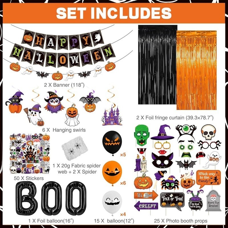 You may also like Halloween Catacombs Backdrop Party Decoration 6 Pack Insta-theme 4ft x 30ft New 14.77 USD 15.88 USD Free shipping 7% off Gingerbread Decorations Set Waterproof Cutouts Christmas Party 30 Pieces New 11.75 USD 12.63 USD Free shipping 7% off 72 Piece Wedding Photo Booth Props Fun Bridal Shower Decor Assorted Props New 21.88 USD 23.53 USD Free shipping 7% off Orange Fringe Backdrop Set 3.2x8ft Pack of 2 Party Decorations Basketball Events 18.86 USD 20.28 USD Free shipping 7% off Halloween Balloon Garland Kit 119pcs Party Decorations Arch Easy Assemble New 25.18 USD 27.08 USD Free shipping 7% off 20 Piece Bridal Shower Wedding Photo Booth Props Kit Mr & Mrs Fun Party Supplies 20.44 USD 21.98 USD Free shipping 7% off 38pc Christmas Photo Booth Props Set Holiday Party Fun Selfie Decorations New 15.51 USD 16.68 USD Free shipping 7% off 20 Piece LGBTQ Photography Props Kit Mr Mr Gold Wedding Photo Booth Supplies New 23.6 USD 25.38 USD Free shipping 7% off Wavy Foil Fringe Curtain 4 Pack Metallic Tinsel Backdrop Parties Decorations New 25.18 USD 27.08 USD Free shipping 7% off Christmas Party Decorations Set Paper Fans Honeycomb Balls Swirls Banner Garland 26.77 USD 28.78 USD Free shipping 7% off Anniversary Photo Booth Props Couple Celebrations Love Memories Easy Assemble US 25.13 USD 27.02 USD Free shipping 7% off DIY Gold Paper Photo Frame Prop Weddings Birthdays Parties Keepsake Decor New 15.7 USD 16.88 USD Free shipping 7% off About this item Happy Halloween: our Halloween decorations indoor contain 2 fringe curtains in black and orange, 1 No-DIY happy Halloween banner, 1 pumpkin ghost beat garland, 25 pcs Halloween photo booth props, 50 Halloween stickers(25 designs, each one has 2 pieces), 6 paper cutouts, 6 Halloween foil hanging swirls, BOO letter foil balloons, 15 latex balloons in 3 colors(black, orange, white), 20g spider wed, 2 spider, 1 straw and 1coil. Our Halloween Decorations Party needs almost festival needs. High Quality: All these Halloween party decorations are made of high-quality material, are durable, sturdy, have no fading, and are tear-resistant. With rich patterns and unique colors, the birthday decor will decorate your table well and bring a different kind of fun to your party. From playful balloons to eye-catching banners, each element adds a splash of effervescence to your gathering Great Value: Happy Halloween decorations are incredibly versatile, perfect for houses, spooky hallways, trick-or-treating events, Halloween celebrations, vampire-zombie party decor, and more. It's not just a decoration for your spooky-themed parties but also doubles as a fantastic photo backdrop. No-DIY: Happy Halloween banner comes pre-strung with black wire and is fully assembled to save you time and hassle. Our Halloween decorations indoor are rich enough; they meet everyone's Halloween home decoration needs. This lets you effortlessly create a horror theme party atmosphere and enjoy more time celebrating with friends and family. Expertly crafted: Utilizing professional printing techniques, both the text and designs undergo meticulous treatment to ensure a visually stunning effect. The high-quality printing technology not only enhances clarity in the designs but also ensures long-lasting color that won't fade easily, making your party even more spectacular! Theme: Halloween Color: Multicolor Brand: Recommended Uses For Product: Decor, Home Occasion: Halloween Special Feature: Lightweight Specific Uses For Product: Indoor Product Dimensions: 7. 08"L x 9. 84"W Target Audience: Unisex Included Components: No additional components included You may also like Wedding Photo Booth Props Set 24 Unique Designs Fun Shapes Durable Cardstock New 18.86 USD 20.28 USD Free shipping 7% off 20 Piece Bridal Shower Wedding Photo Booth Props Kit Mr & Mrs Fun Party Supplies 20.44 USD 21.98 USD Free shipping 7% off 20pcs Tea Party Decorations Photo Booth Props Bridal Shower Birthday Celebration 22.02 USD 23.68 USD Free shipping 7% off Halloween Spider Web Centerpieces 4pcs Paper Lanterns Table Decor Party Favors 15.7 USD 16.88 USD Free shipping 7% off Black Foil Fringe Backdrop Set Party Photo Booth Decoration Stage Background New 9.35 USD 10.05 USD Free shipping 7% off 10 Piece Boho Botanical Bride Photo Booth Props Kit Wedding Bridal Shower New 15.7 USD 16.88 USD Free shipping 7% off Engagement Photo Props Set 40pcs Fun Cards Wooden Sticks DIY Celebration New 17.28 USD 18.58 USD Free shipping 7% off Biodegradable Flower Petal Confetti Wedding Decorations Eco-Friendly 50 Pack New 41.75 USD 44.89 USD Free shipping 7% off 38pc Christmas Photo Booth Props Set Holiday Party Fun Selfie Decorations New 15.51 USD 16.68 USD Free shipping 7% off Burlap Banner Kit Blank Flags Stencils DIY Personalized Party Decor Supplies New 22.02 USD 23.68 USD Free shipping 7% off Halloween Party Decorations Set Banner Swirls Flags Tissue Poms Accessories New 15.7 USD 16.88 USD Free shipping 7% off 20 Piece Winter Holiday Photo Booth Props Kit Fun Party Supplies DIY Assembly US 20.44 USD 21.98 USD Free shipping 7% off