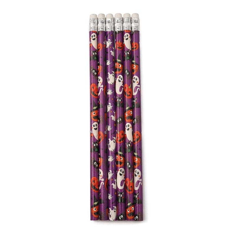 Features: Our halloween pencils stationery set include 6 or 12 pcs wooden pencils, including Halloween such as pumpkins, bat, witch, skeleton. Enough quantity will meet daily use and replacement, you also can share with your family and This Halloween pencils for kids measure about 7.87inch. These halloween themed pencils are designed with a wooden body and pencil that allows for smooth writing, durable and can be used for a long time, clear handwriting that is not easily broken. These Halloween pencils work great for Halloween Event Party Favor, Game Reward, Prizes for Students, Seasonal Holiday Party, Classroom Reward, Halloween Night Event and Trick & Treat Prize! The top of pencils is also equipped with a quality eraser for easy erasures while writing. Funny Halloween Toy Pencil set helps children to unleash their creativity and create Halloween-themed artwork, stories, and more. Specifications: Type: Pencil Color: Randomly Color Type: Set of 6 Pieces; Set of 12 Pieces; Material: + Length: Approx. 20cm/7.87in Weight: Approx. 45g; 90g Package Includes: Pack Halloween Themed Pencils note: 1.Please allow 0-1cm error due to manual measurement. make sure you do not mind before you bid. 2.Due to the difference between different monitors, the picture may not reflect the actual color of the item. Thank you