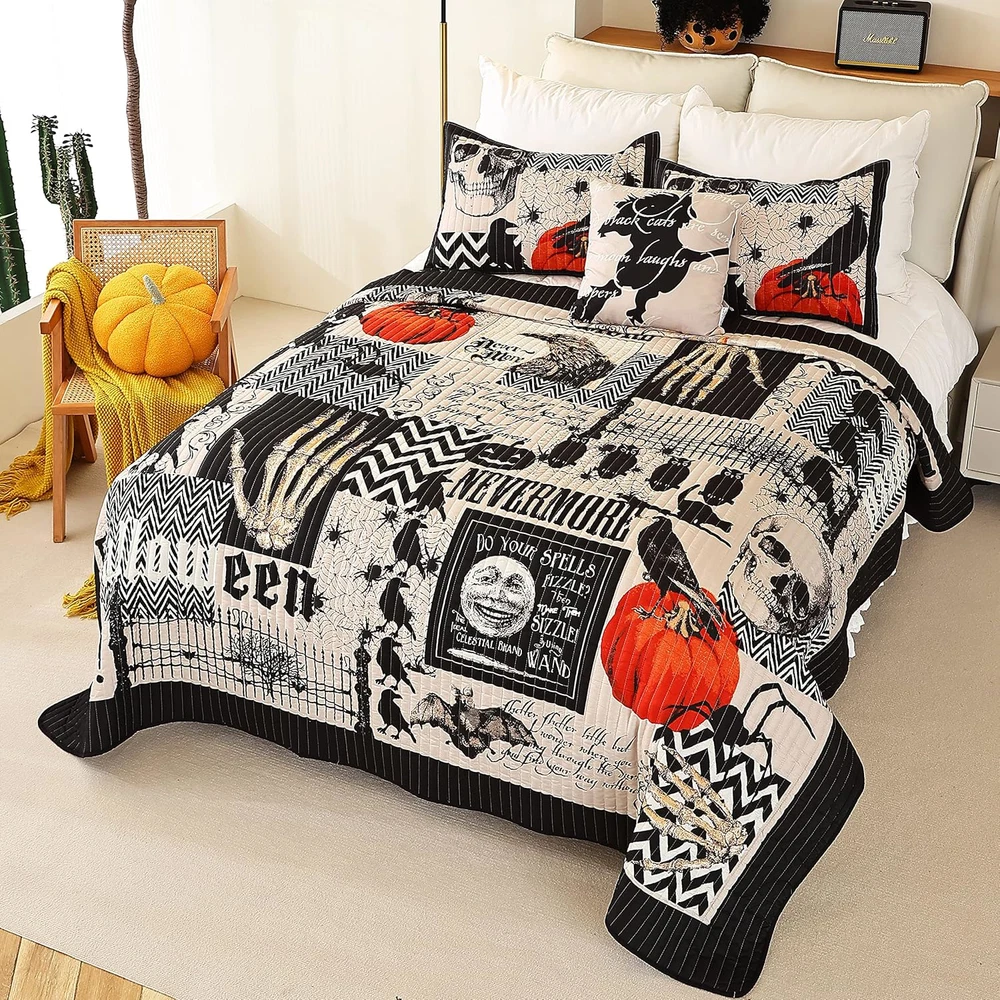 Fast Shipping Great Customer Support Satisfaction Guaranteed DESCRIPTION Shipping Shipping Shipping All domestic packages are shipped for Free (Unless other shipping method was selected during the checkout) Most items ship and arrive much sooner than the estimate delivery date. Usually within 2-3 days from payment. However, we have longer estimates to compensate for the occasional delay or supply chain breakdown. We do not accept P.O. BOXES - PLEASE PROVIDE A PHYSICAL ADDRESS Return Return Return In the event that you would like to return your purchase, we allow returns that are processed within the defined return date (the return date is to be found in the return policy/shipping and handling section) Please contact us for a return authorization and the return shipping address. Payment Payment Payment PayPal is our preferred method of payments it's the quickest, easiest and most secure way to pay for your goods or services online. PayPal offers buyer and seller protection should there be a problem. If you do not have a PayPal account, to get started and buy your first item with us is very easy. Simply click on the 'Buy It Now' button and follow the eBay checkout steps. Select PayPal as the payment method you then will be given the chance to enter your card details in to PayPal's secure checkout in order to pay for your order. Once the payment has been made, you will then be given the opportunity to make your own PayPal account to make paying for your items in the future very easy. Should there be a problem with payment please do let us know. Feedback Feedback Feedback Customer satisfaction is very important to us. If you have any problem with your order,please contact us and we will do our best to make you satisfied, please do not leave a negative feedback before we resolve your problem. We guarantee that your issue will be solved quickly. As long as you are happy with your purchase of , please leave us a positive feedback. Your feedback is very important to us it affects our search placement on eBay. We will leave a positive feedback for you in return automatically once we receive your feedback. Contact Us Contact Us Contact Us If you have any queries, please contact us via ebay. We usually respond within 24 hours on weekdays. Thank you for visiting our ebay store! šćDelicate Halloween Designć: Exquisite reversible stitching technology and classic print are the features of the bed cover set. The design of dark elements, ghosts, cats, pumpkin patterns, will all be in line with the festival theme. This quilt set is the perfect match for Halloween home decorations. šćSoft & Comfortableć: Shell: 100% soft lightweight fabric; filling: 100% Polyester. The design of a quilt creates a cozy and durable state, so it will soften after washing without clumping and shifting. šćSize & Measurementć: The king size Halloween decorative bedding sets includes 1 quilt: 104"x 90"; 2 pillowcases: 20"x 36";1 throw pillowsham:18"x 18". We kindly suggest that you measure your bed before purchasing. šćEasy Careć: Machine wash cold on gentle cycle and tumble dry low. Do not iron or bleach. šćAfter-sales Serviceć: Please feel free to contact us if you have any questions about our products. We will try our best to solve the problem as soon as possible. Halloween Pumpkin Ghost Black Quilt Set Queen 4 Piece Coverlet 90x90 Click here to see description Fast Shipping Great Customer Support Satisfaction Guaranteed DESCRIPTION Shipping All domestic packages are shipped for Free (Unless other shipping method was selected during the checkout) We ship within two business days of payment, usually sooner Standard FREE shipping takes between 3-5 business days Expedited shipping takes between 2-3 business days Overnight shipping takes between 1-2 business days We do not accept P.O. BOXES - PLEASE PROVIDE A PHYSICAL ADDRESS We Ship Globally using ebay's GSP, the item is sent to a logistic center in KY and shipped from there to the rest of the world. International customers are responsible for all duties and taxes Contact your local authority for questions related to the amount of duties or taxes you will be responsible for Return In the event that you would like to return your purchase, we allow returns that are processed within the defined return date (the return date is to be found in the return policy/shipping and handling section) Please contact us for a return authorization and the return shipping address. Please contact us for a Return Merchandise Authorization (RMA) number. We advise you to use a reputable carrier service when returning your goods. Please pack all returns appropriately. We ship globally Via eBay's global shipping program (GSP). Thus we don't cover returns for items shipped globally. Buyers returning such items will be refunded ONLY for the item's cost and not for the shipping. please check the Voltage information and make sure it matches the one in your country. In case it's not stated in the description, do ask us. Payment PayPal is our preferred method of payments it's the quickest, easiest and most secure way to pay for your goods or services online. PayPal offers buyer and seller protection should there be a problem. If you do not have a PayPal account, to get started and buy your first item with us is very easy. Simply click on the 'Buy It Now' button and follow the eBay checkout steps. Select PayPal as the payment method you then will be given the chance to enter your card details in to PayPal's secure checkout in order to pay for your order. Once the payment has been made, you will then be given the opportunity to make your own PayPal account to make paying for your items in the future very easy. Should there be a problem with payment please do let us know. Feedback Customer satisfaction is very important to us. If you have any problem with your order,please contact us and we will do our best to make you satisfied, please do not leave a negative feedback before we resolve your proble