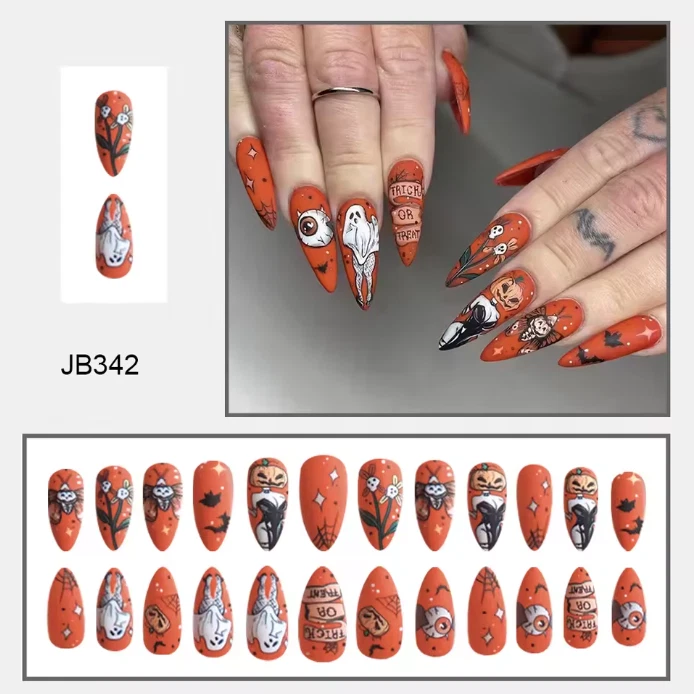 Elevate your spooky season style with our Halloween Press On Nails – the ultimate accessory for your haunted look! This 24-piece set of long stiletto black false nails features eerie ghost and spider designs, perfect for Halloween parties, cosplay events, or just showing off your festive spirit. Made from high-quality resin , these press-on nails are lightweight, durable, and easy to apply. Whether you're going for a witchy vibe, gothic glam, or creepy cute look, these statement nails instantly add drama and character to your Halloween costume or outfit. Each set includes various sizes to ensure the perfect fit for every finger. Just press on with nail glue or adhesive tabs, and you’re ready for a night full of chills and thrills! Key Features Complete Set : Includes 24 pcs of Halloween-themed black stiletto nails Spooky Designs : Features ghost and spider patterns for a chilling Halloween aesthetic High-Quality Resin : Durable, lightweight, and comfortable for extended wear Perfect for Halloween : Ideal for costume parties, trick-or-treating, or themed photo shoots Easy Application : Press-on style for quick and simple use (tabs included) Specifications Material : Acrylic Resin Style : Long Stiletto Color : Black with ghost and spider designs Number of Pieces : 24 nails Occasion : Halloween, Cosplay, Themed Events Origin : China Keywords press on nails, Halloween nails, stiletto black nails, spider nails, ghost fake nails, Halloween press on nails, long stiletto nails, Halloween nail art, black false nails, spooky nails, creepy cute nails, resin nails Halloween, cosplay fake nails, gothic nail tips
