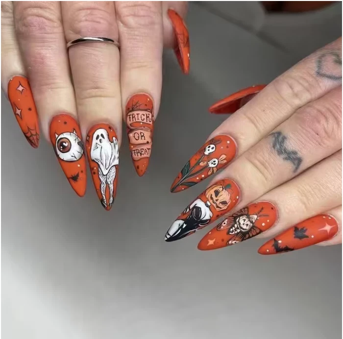 Spooky Halloween Ghost Press-On Nails Large Size Medium Almond Shape
