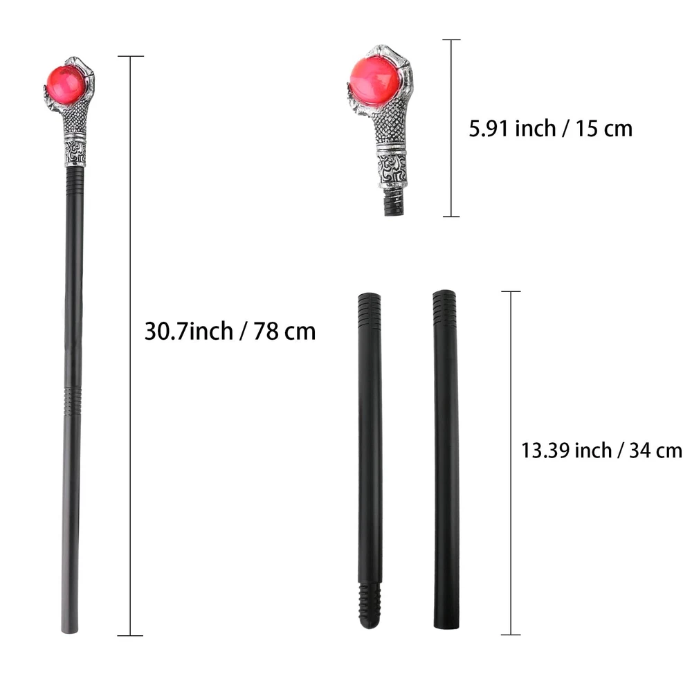 Embark on a mesmerizing Halloween adventure with our Fire Dragon Claw Scepter and Orb Wand Walking Cane. This captivating costume accessory is designed to elevate your cosplay, making you the center of attention at any Halloween gathering, fancy dress party, or themed event. Whether you're transforming into a spellbinding magician, a wise wizard, an enchanting witch, a majestic king, a regal queen, or any other mystical character, this dragon claw scepter and orb wand combo will complete your ensemble with an air of and mystery. The adjustable and detachable design of this walking cane allows for customizable height and easy storage. Disassemble it into three sections for convenient transport, or adjust it to your desired length for the perfect fit. Suitable for both adult and cosplayers, this versatile accessory can be tailored to suit any costume. Crafted with intricate details, the dragon claw and orb create a captivating appearance that commands attention at cosplay events, themed parties, trick-or-treating, and Halloween festivals. The lightweight yet durable plastic construction ensures comfortable carrying and long-lasting use, making it the perfect companion for all your Halloween adventures. Each order includes the complete accessory set, featuring the fire dragon walking cane and orb wand attachment. With minor assembly required, you'll be ready to embrace your mystical persona and cast a spell on everyone you encounter. Add this must-have prop to your Halloween collection and let the unfold. Adjustable Length: This versatile Halloween walking cane includes 13.5-inch detachable rods and a 6.8-inch wand head, making it perfect for both adults and . Whether you're dressing up as a wizard, Maleficent, or an evil queen, this cane is the ideal accessory for your costume. Versatile Costume Prop: Our 30-inch Maleficent staff doubles as an Evil Queen wand and Dark Fairy scepter. It's perfect for various Halloween characters and cosplay events. Use it as a wizard staff, Maleficent staff, or even a Halloween decoration to complete your look. Lightweight and Durable: Crafted from sturdy plastic, this Halloween cane weighs only 86g, making it comfortable for extended use during trick-or-treating or costume parties. It's a must-have for anyone looking to add a touch of to their Halloween costume. Unique Design: Featuring a striking red orb with a silver dragon claw, this Halloween walking cane is sure to turn heads. It's an eye-catching accessory for both adults and , perfect for completing your wizard, Maleficent, or evil queen costume. Convenient Packaging: Our Halloween cane comes in compact 16x6x2 inch packaging, making it easy to or gift. It's the ideal accessory for Halloween costumes 2024, suitable for men, women, boys, and girls. Note: This listing is for the dragon claw staff only. Other costume elements shown in images are not included.