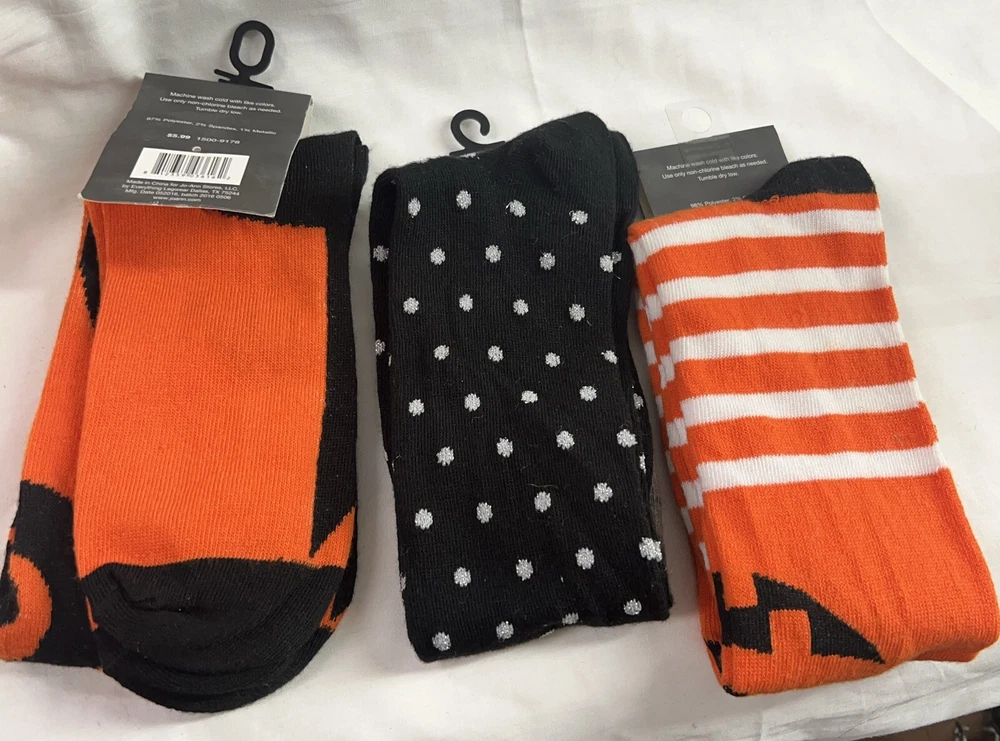 Get ready for Halloween with these fun and spooky knee-high socks! These socks are perfect for women with shoe sizes 4-10 and are great for casual occasions. Each pack includes three pairs of socks, all featuring different Halloween patterns, such as pumpkins, witches, and ghosts. Made from lightweight polyester material, these socks are comfortable and easy to care for, as they are machine washable. Whether you're dressing up for a party or just want to add some festive touches to your everyday outfits, these socks are sure to make a statement. Get your hands on these Happy Halloween socks today!