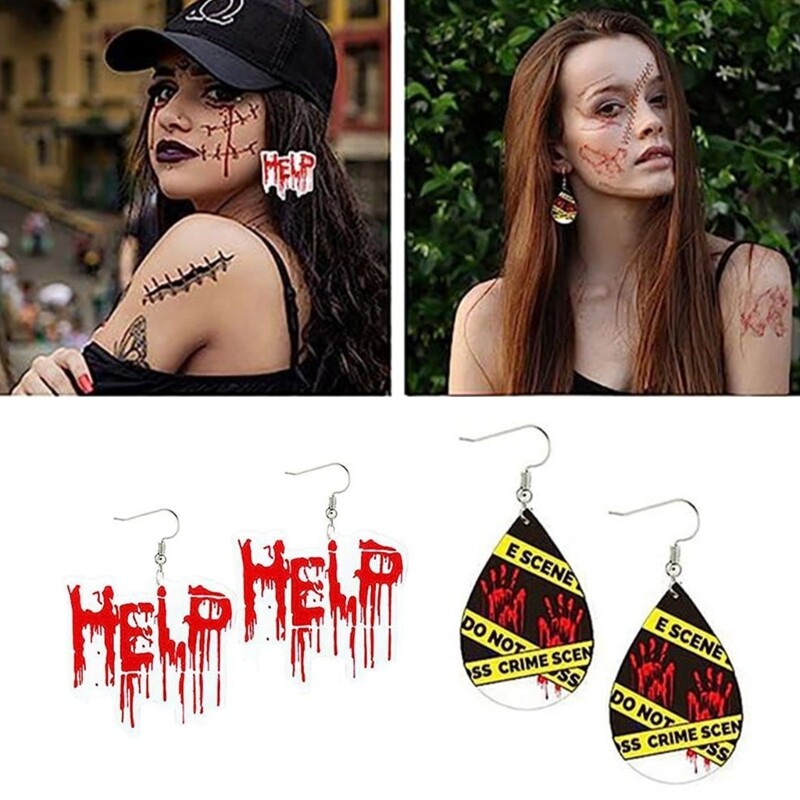 Features: Stand out this Halloween with these terrifying bloodstain earrings, for adding a touch of horror to your costume. Made from acrylic, these Halloween earrings are lightweight and comfortable to wear, ensuring you can enjoy the festivities all night long. Designed for both men and women, these versatile earrings are suitable for anyone looking to make a statement during the Halloween season. Whether you're attending a haunted house party or trick or treating with friend, these bloodstain earrings will your spooky look and impress everyone around you. the of Halloween with these bloodstain earrings, and let your creativity as you transform into a truly terrifying character. Specifications: Acrylic Length: Approx. 2.36-2.76inch(6-7cm) Package Includes: 1 Pair Halloween Earrings note: Please allow 1-2cm errors due to manual measurement. Due to the difference between different monitors, the picture may not reflect the actual color of the item.