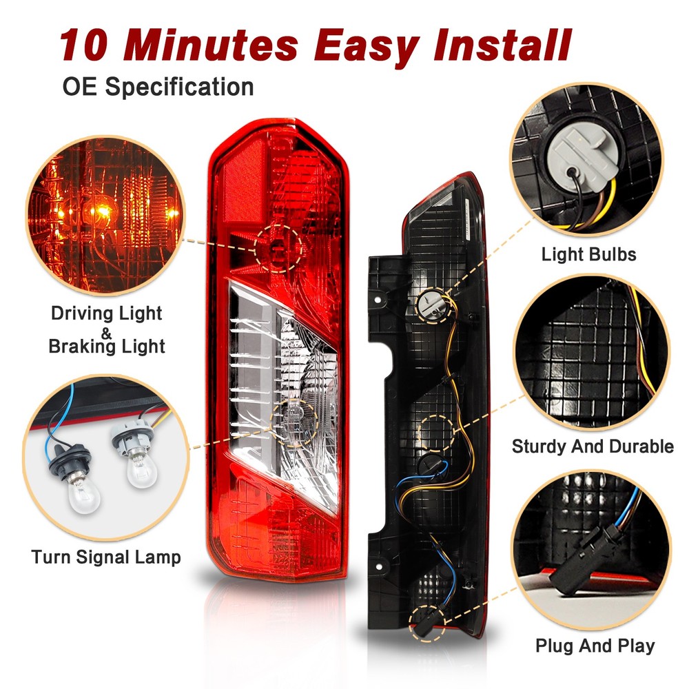 For 2015-2025 Ford Transit-150 / Transit-250 / Transit-350 / Transit-350 HD / E-Transit Halogen Tail Light with Single Rear Wheels Driver Left Side Fitment For 2015 2016 2017 2018 2019 2020 2021 2022 2023 2024 20 25 Transit-150 For 2015 2016 2017 2018 2019 2020 2021 2022 2023 2024 20 25 Transit-250 For 2015 2016 2017 2018 2019 2020 2021 2022 2023 2024 20 25 Transit-350 For 2015 2016 2017 2018 2019 2020 2021 2022 2023 2024 20 25 Transit-350 HD For 2022 2023 2024 20 25 E-Transit Base Description This Tail Light assembly is a direct replacement for your original Tail Light , ensuring a perfect fit and easy to install. Providing with bright and clear illumination. This Tail Light assembly is DOT and SAE certified, meaning it meets or exceeds the standards for quality and safety. Item Specifications OEM: CK4Z13405G Fits Following: For 2015 2016 2017 2018 2019 2020 2021 2022 2023 2024 2025 Transit-150/Transit-250/Transit-350/Transit-350 HD/ 2022 2023 2024 20 25 E-Transit Condition: 100% Brand New Warranty: 1 Year Fitment Type: Direct Replacement Lighting Technology: Halogen Lens Color: Red Material: Plastic Interchange Part Number/Replaces: CK4Z-13405-A, CK4Z-13405-C, CK4Z-13405-F Package Content 1pc Driver Left Side Tail Light ( OEM: CK4Z13405G ) Features 1.Direct Replacement. Perfect fitment. 2.Made of fresh raw plastic particles, got better density consistency and tenacity. 3.Reliable after-sales guarantee. Shipping The Guaranteed Date is automatically generated and displayed by ebay. We can't change it.But we will ship your item out asap after the payment is clear. Usually your Items will be shipped within 1 business day after your payment is cleared. International orders may take 10 to 30 business days to arrive.Thanks for your patience. Return If the package arrives at your location with obvious shipping damage (including broken envelop, empty package and etc), please refuse the shipment. If you find the item is defective after you accept the shipment, please save everything that is attached in the package, including all the documents, and contact us immediately, either through eBay message or email address. You need to state your item ID, item title and what the damage is clearly in your email. And please be advised that digital photos must be attached to the email you send. Notice If you have any questions, please contact to us before leaving bad feedback, we will try our best to solve your problems, thanks for your understanding. On Jan 11, 2026 at 22:45:26 PST, seller added the following information: