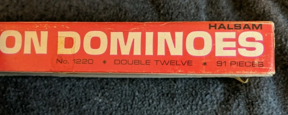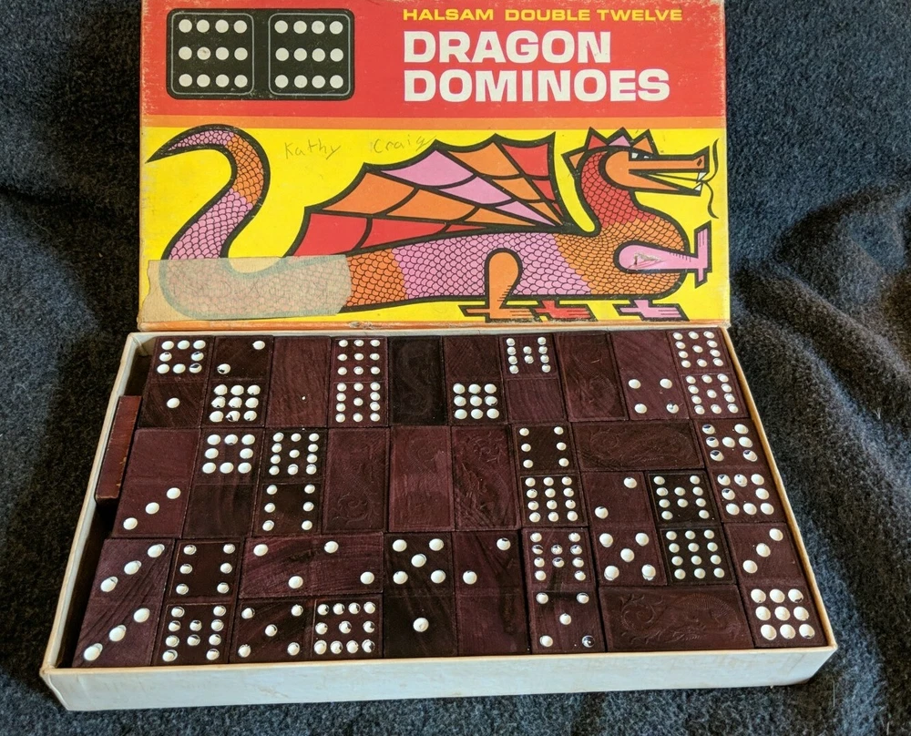 Game Type:Board GameGame Title:Dragon DominoesBrand:Halsam Double TwelveCustom Bundle:NoType:Game BoardModified Item:NoUPC:Does not applyCharacter Family:dragonMin. Number of Players:2 playersAge Level:17 Years & UpTheme:StrategyNon-Domestic Product:Nogtin13:Does not applyYear:1986