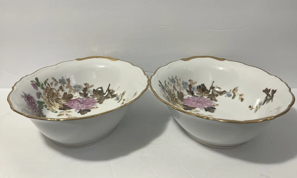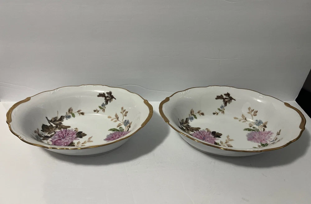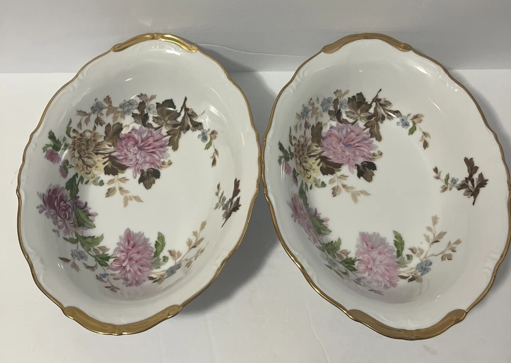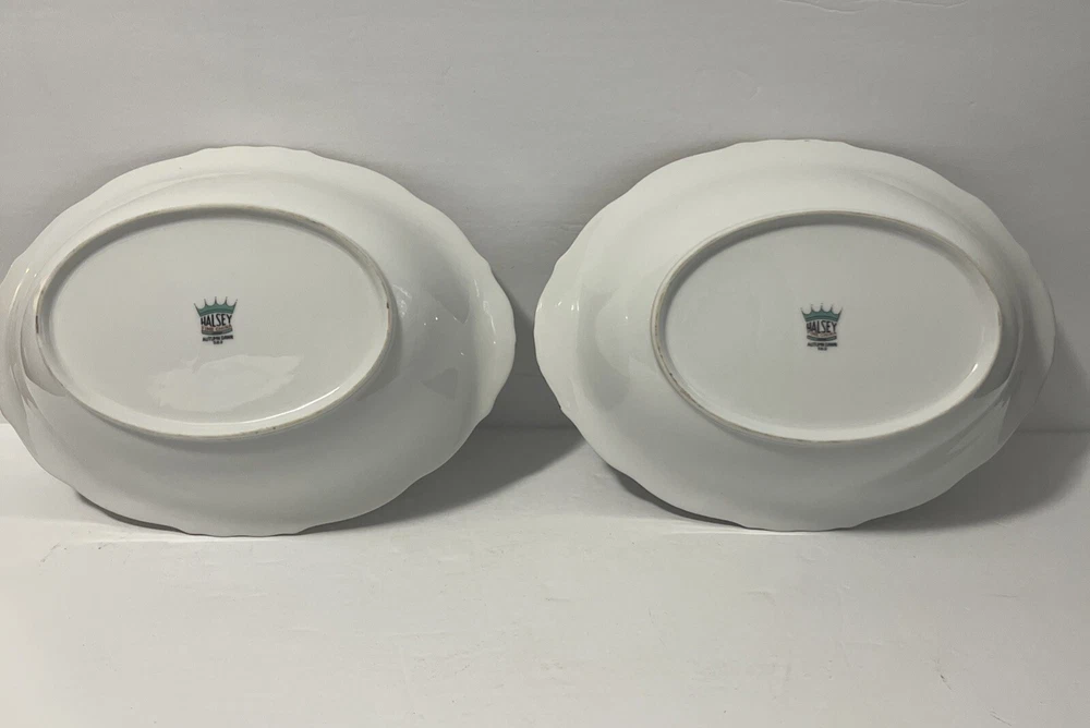 Complete set- listed separately Add a touch of vintage elegance to your dining table with this beautiful set of Halsey Autumn Dawn #562 Fine China serving dishes. The oval platter and serving bowls feature a stunning floral print and are accentuated with 22k gold detailing, making them perfect for all occasions. The set is made in Japan and is an original licensed reproduction, adding to its uniqueness and value. The glossy finish and multicolor design make these dishes a great addition to any collection. The set includes two pieces and is perfect for those who appreciate the beauty and craftsmanship of antique tableware. Whether you're hosting a dinner party or enjoying a family meal, this Halsey Autumn Dawn #562 Fine China set will impress your guests and add a touch of sophistication to your table setting.