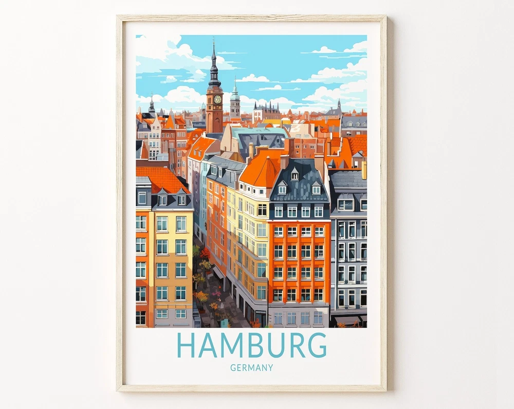 Hamburg Germany Travel Poster Wall Art Hamburg Germany Travel Poster Europe