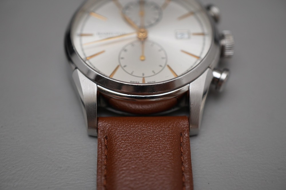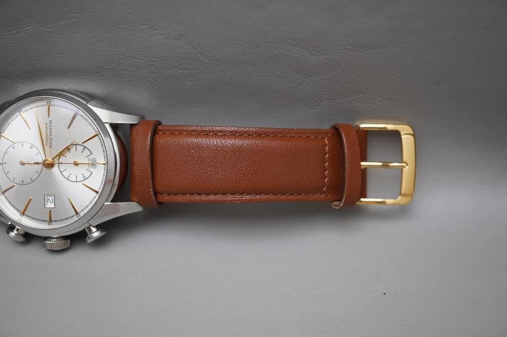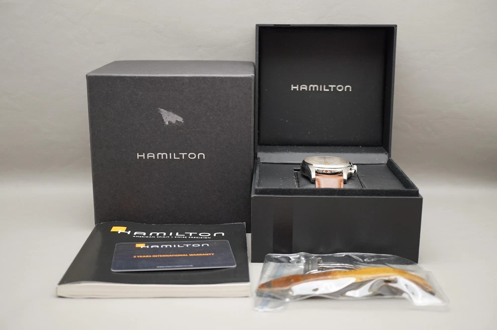 Manual: Yes Warranty Card: Stamped Strap: Aftermarket Case Width: 42mm Model: Hamilton American Classic Reference: H32416581 Lug-To-Lug: 52mm Case Thickness: 14.75mm Lug Width: 22mm Model Name: Spirit Of Liberty Automatic Chronograph Watch Type: Wristwatch Box: Original Warranty Card Date: 2014.7.5 Reference Number: H32416581 Department: Men Brand: Hamilton Strap Type: leather Movement: Mechanical (Automatic)