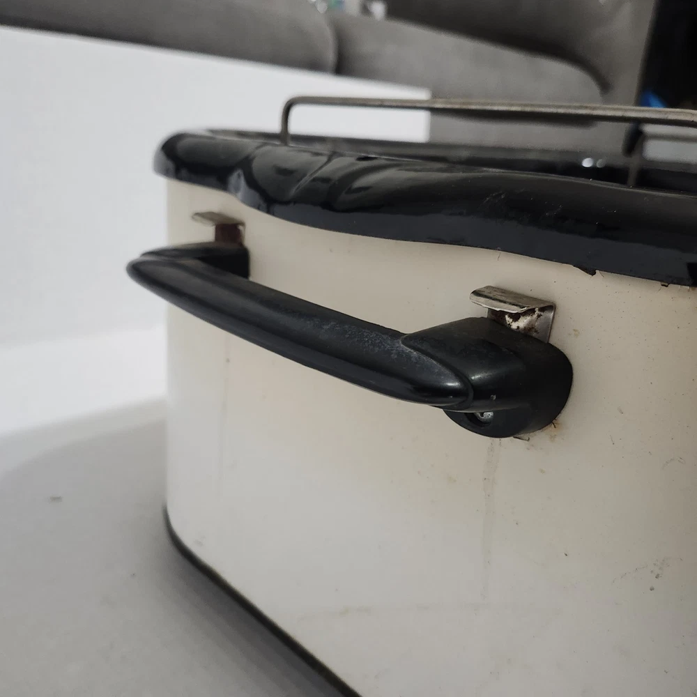These are the replacement handles that came from a Hamilton Beach Automatic Roaster Oven Model 527. There is damage and lots of wear to the item. Last 4 pictures show the roaster oven the item came from.