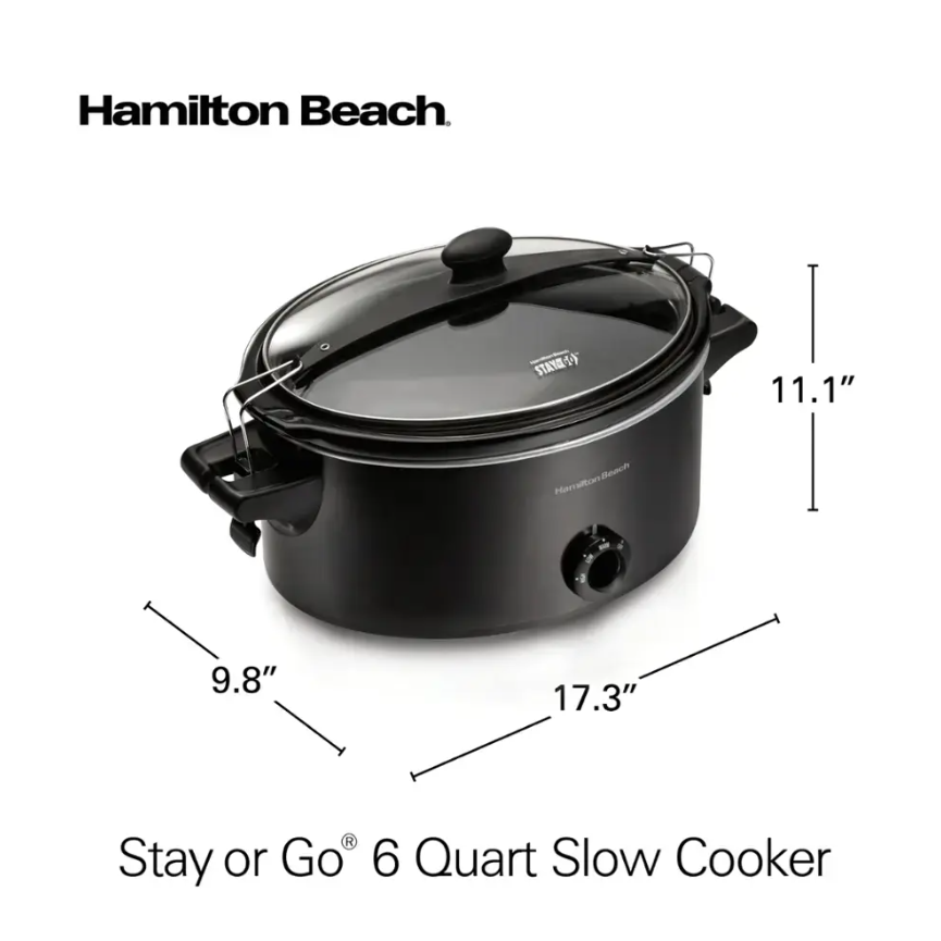 Hamilton Beach Stay or Go 6-Quart Portable Slow Cooker | Black π Take Your Delicious Meals AnywhereβMess-Free! π²β¨ The Hamilton Beach Stay or Go 6-Quart Slow Cooker is designed for easy, mess-free cooking at home and on the go! The clip-tight lid lock ensures spill-free transportation , making it perfect for family dinners, potlucks, and gatherings . With simple dial controls , you can cook flavorful meals with minimal effort. Just set it and forget it! π₯ Key Features & Benefits: β 6-Quart Capacity β Serves 7+ people , perfect for family meals & gatherings β Stay or Go Lid Lock β Reduces spills while traveling β Versatile Cooking Settings β Choose Low, High, or Warm β Effortless Cooking β Simple dial control, no monitoring needed β Mess-Free Cleaning β Dishwasher-safe stoneware crock & glass lid β Cooks Flavorful Meals β Great for meats, stews, casseroles, and desserts π Dimensions & Specs: π Capacity: 6 Quarts ( Serves 7+ People ) π₯ Heat Settings: Low, High & Warm ποΈ Control Type: Simple Dial Control π¦ Material: Removable Stoneware Crock & Glass Lid (Dishwasher Safe) π Portability: Stay or Go Lid Lock System prevents spills π Whatβs Included? β Hamilton Beach Stay or Go 6-Quart Slow Cooker (Black) β Dishwasher-Safe Stoneware Crock β Glass Lid with Full-Grip Handles & Locking Clips β User Manual & Recipe Guide π‘ Why Choose the Hamilton Beach Stay or Go Slow Cooker? β Great for Traveling β Clip-tight lid prevents spills while on the move β Perfect Size for Families β Holds a 6 lb. chicken or 4 lb. roast β Stress-Free Cooking β Simple dial controls , no need to monitor β Easy Cleanup β Dishwasher-safe crock & lid, wipeable exterior β Trusted Hamilton Beach Quality β Durable, reliable, and built to last π Perfect For: π Slow-Cooked Meats β Tender chicken, beef, pork, and more π₯ Soups & Stews β Chili, beef stew, and comforting meals π Casseroles & Pasta Dishes β Easy, one-pot meals πͺ Desserts & More β Warm cobblers, cakes, and dips π Potlucks & Gatherings β Transport food safely without spills π Click "Add to Cart" Now β Hassle-Free Cooking & Travel Made Easy!
