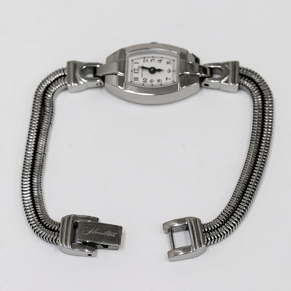 Hamilton H31111183 White Dial Analog Quartz Stainless Steel Women's Watch Tested Description Condition: used Operation confirmed. There are many scratches and line scratches on the back cover. There are dents on the case that cannot be removed even with finishing, but it is in good condition and has likely been finished in the past. Dial: White dial Movement: Quartz Case material: Stainless steel Strap material: Stainless steel Case size: Height: 28mm (including lugs) Width: 14mm (excluding crown) Wrist size: Maximum 15cm Accessories: None. All my products are 100% Authentic. Please feel free to contact us if you have any question. Please check the picture. Payment Please pay within 5 days after the auction closed. Shipping About other area, please ask me. When you purchase two or more my items, I can send them together and discount shipping cost. Returns Returns are accepted ONLY if the item was not the item described. International Buyers - Please Note: * Import duties, taxes and charges are not included in the item price or shipping charges. These charges are the buyer's responsibility. * Please check with your country's customs office to determine what these additional costs will be prior to bidding/buying. * These charges are normally collected by the delivering freight (shipping) company or when you pick the item up - do not confuse them for additional shipping charges. * We do not mark merchandise values below value or mark items as "gifts" - US and International government regulations prohibit such behavior.