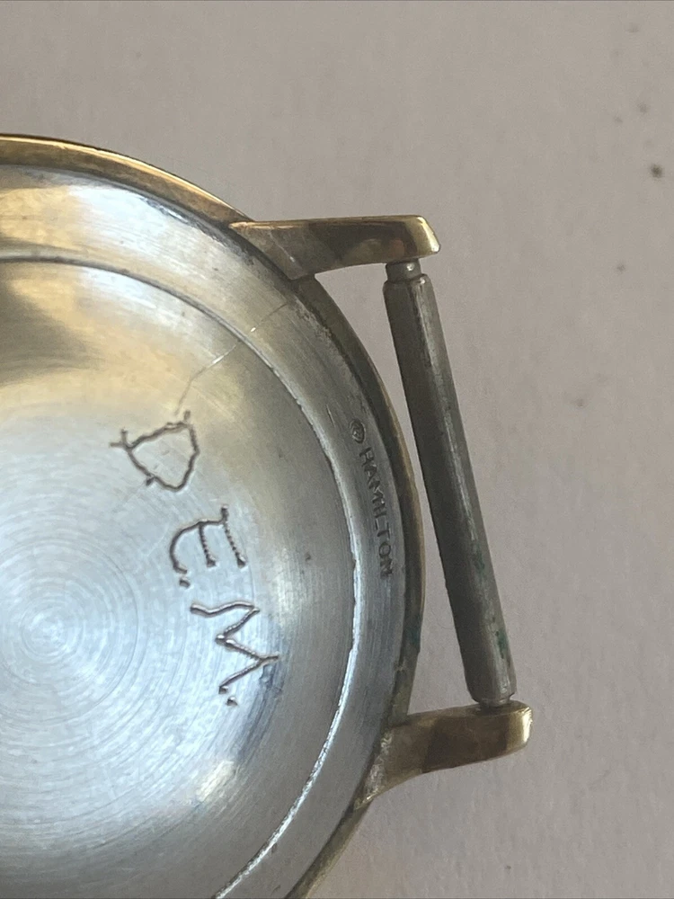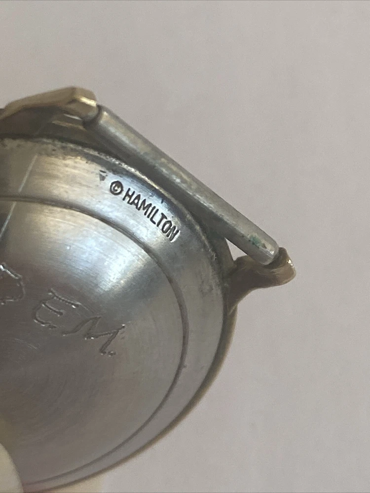 Crafted for the discerning gentleman, this Hamilton men's wristwatch presents a seamless blend of classic sophistication and modern functionality. The 10k RGP case ensures durability and a timeless aesthetic, encasing the precision mechanism that Hamilton is renowned for. With its elegant design, this timepiece complements both casual and formal attire, making it a versatile addition to any wardrobe. The watch stands as a testament to Hamilton's commitment to quality and style, ideal for the modern man who appreciates the finer things in life. Sold as is. Engraved It ticks!
