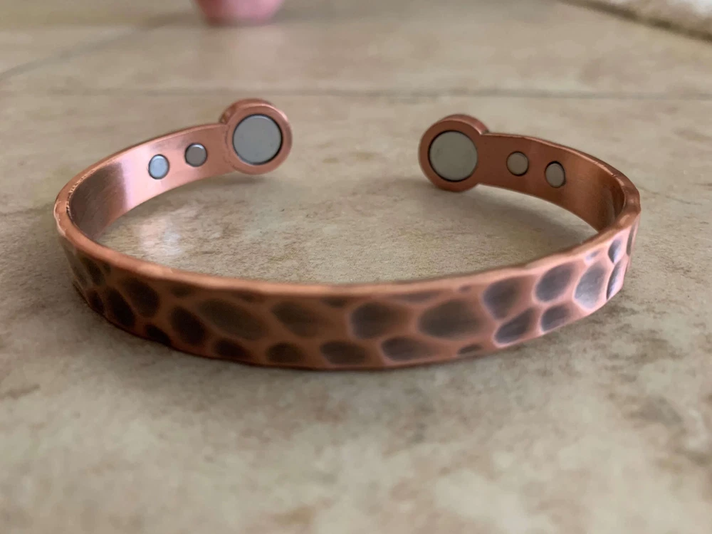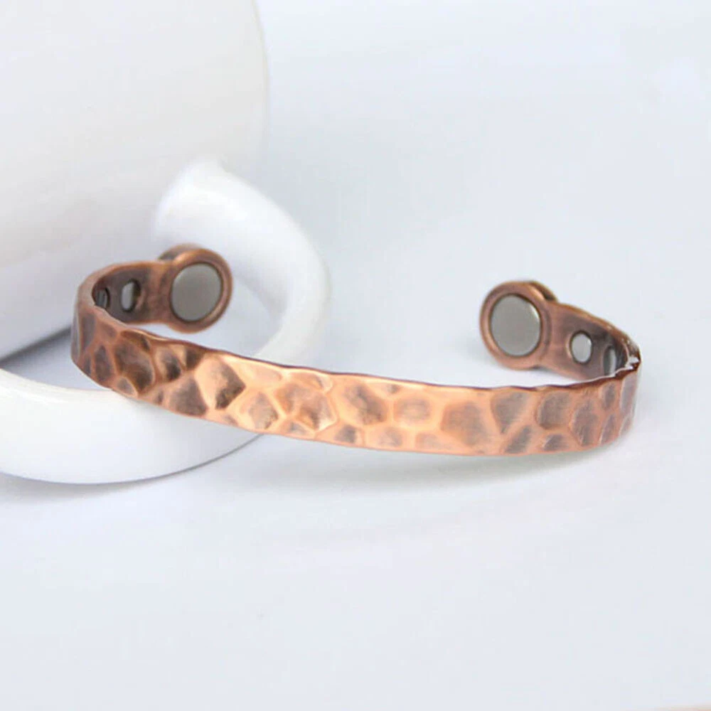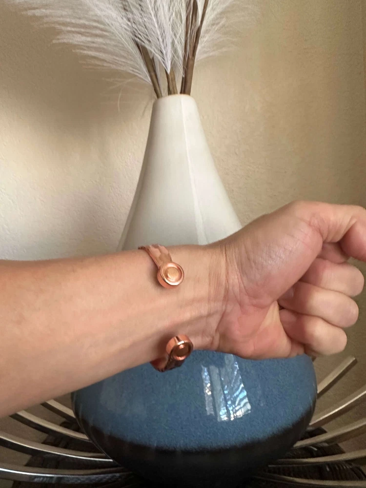 KEY TO GOOD HEALTH IS GOOD CIRCULATION...It works like Acupuncture without the needles! * BEST LOOKING, highest quality, Stylish Modern European Designed and Precision Hand-Crafted Bracelets. Just wear it, it looks great and its therapeutic, what more could you ask for? Treat yourself and your loved ones. * Relieves Aches and Pain, Helps Arthritis pain, Improves Circulation, Reduces Inflammation, Boosts Immunity, Improves Balance, Stress & Anxiety relief (Makes you feel better) * 6 Magnets - 2- 10,000 Gauss each + 4 - 5,000 Gauss each for 40,000 Gauss power! Pure 100% Copper bangle bracelet with strongest Neodymium magnets. They are 10X stronger than cheaper and weaker hematite magnets. * KEY BENEFITS- Our bracelets may help increase balance, strength, flexibility, and energy as well as increase blood circulation to help relieve aches and pain. It may help healing process and induces sense of well-being. It's perfect for people with active life style like runners, playing golf or sports. Great gift for yourself and your loved ones. Perfect Unique Gift for everyone! Try it, love it or 60 days money back guaranteed.