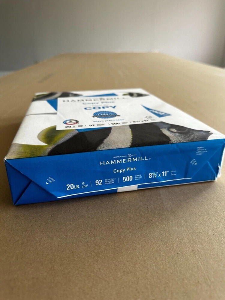 Authentic & New & Sealed Or Your Money Back Everything is new , Sealed Box! You will receive an unopened box! All of our items are new stock. It is 2024 version. We always guarantee our quality of product or your money back! Hammermill Copy Plus Paper, Letter (8.5" x 11"), 500 sheet 20LB, Case Of 10 Ream Case Of 10 Ream = 5000 sheets Made In The USA FREE SHIPPING Description Copy Plus printer paper is an economical paper designed for everyday use at offices large and small. Offering dependable performance on all office machines, you'll want to have plenty of this dependable paper on hand for everyday, general office use. It works well in high-speed copiers, dry toner plain-paper copiers and fax machines. ColorLok® for bolder blacks, brighter colors and faster drying. Backed by the 99.99% Jam-Free® Guarantee. Acid-free material prevents yellowing over time to ensure a long-lasting appearance. You'll want to have plenty of this economical yet dependable paper on hand for everyday, general office use. Works well in high-speed copiers, dry-toner plain-paper copiers and fax machines. Perfect for everyday black and white printing, internal documents and backup hard copies. 99.99% JAM-FREE® guarantee. With ColorLok® technology, blacks are up to 60% bolder, colors up to 30% more vivid and ink dries up to 3x faster. Acid-free for archival quality. Contributes toward satisfying credit MR1 under LEED. Specification Manufacturer ESS Brands Model # ESS-HAM105031 Shipping Weight 5.11 pounds MPN 10503-1 UPC 010199005038 GTIN 00010199005038 FREE SHIPPING We will ship the package within 72 hours (except on Sundays and holidays) after the payment cleared. Items will be shipped by USPS First Class Mail or Priority mail. It takes about 2-5 days to deliver. Shipping time varies greatly depending on the Postal Service and the destination. If you are not satisfied with your purchase, you may return it within 30 days of receipt, for a refund or replacement - Please contact us through eBay messages ! Seller Pays for return Shipping Thanks For Looking