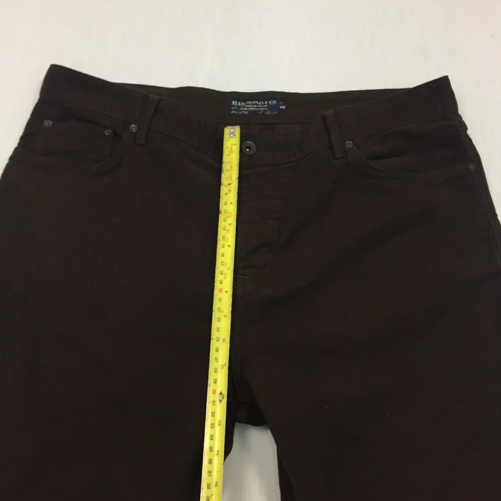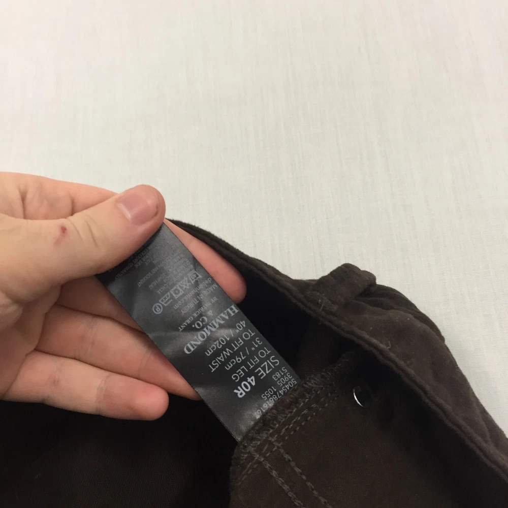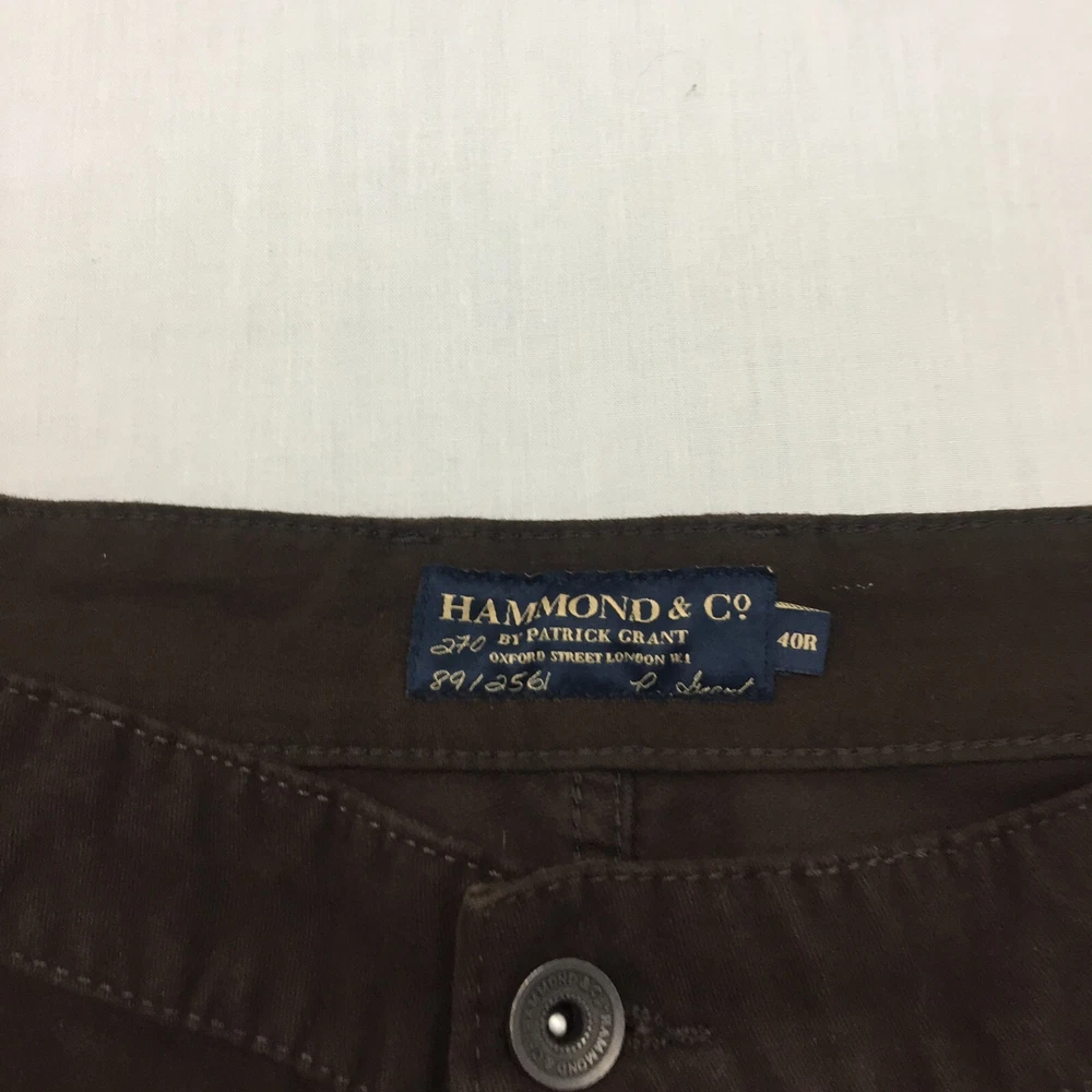 Style: Chino Pocket Type: Coin Pocket Fit: Regular Handmade: No Country/Region of Manufacture: Unknown Colour: Brown Garment Care: Machine Washable Inside Leg: 31 in Personalise: No Leg Style: Straight Closure: Button Accents: Button Size Type: Regular Rise: Mid (10-12 in) Occasion: Business, Casual, Travel Vintage: No Department: Men Fabric Type: Canvas Size: 40 Waist Size: 40 in Type: Trousers Material: Cotton Blend Pattern: No Pattern Season: Autumn, Spring, Summer, Winter Brand: HAMMOND & CO Seller Notes: “Good used condition, check below for full description & photos.”