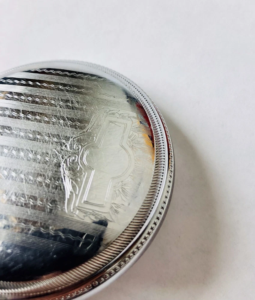 This Hampden pocket watch from the early 1900s features a beautiful engraving on the back, adding a touch of elegance and uniqueness to its design. The watch has a silver case and a white dial, making it suitable for formal or dress occasions. It is a mechanical (manual) pocket watch manufactured in the United States by the Hampden Watch Co., showcasing exquisite craftsmanship and a rare find for collectors of vintage timepieces. The cover is yellowed, however I was captured by the engraving on the rear! Currently, this watch isn’t working. Feel free to message me if you have any questions. Submit an offer, I am ready to make a deal!
