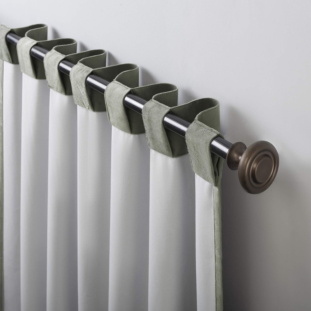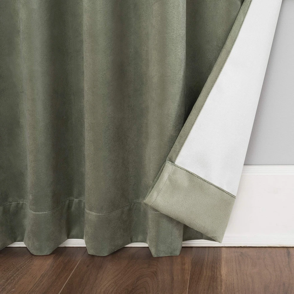 Decadent velvet fabric in solid tones to effortlessly complement your window space Extreme Thermal Lining reduces outside noise and helps keep summer heat and winter chill out of your home Fits a rod up to 1.5" diameter 100% blackout Panels are sold individually and measure 50" W Noise reduction by up to 40% helps you get a sounder, more uninterrupted sleep Hidden back tabs fit curtain rods up to 1.5" in diameter Panels sold individually. Measure carefully prior to purchase. (Image features 2 panels)