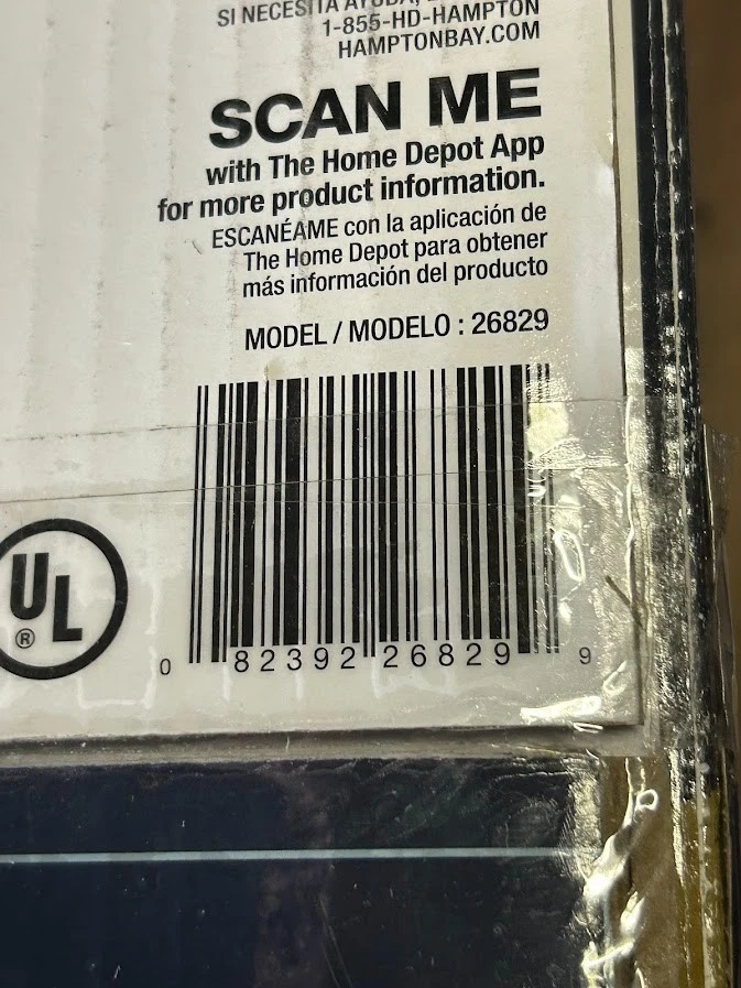 Hampton Bay Industrial 60" Indoor/Outdoor Ceiling Fan | Black w/ Wall Control & Reversible Motor About This Item Bring powerful, efficient air circulation to large indoor or covered outdoor spaces with the Hampton Bay Industrial 60 in. Ceiling Fan. Designed with a high-performance 194 RPM motor and three durable ABS blades, this fan delivers up to 9,999 CFM of airflow—ideal for great rooms, workshops, warehouses, patios, and other expansive areas. The included wired wall-mount control lets you easily select from four speed settings, while the reversible motor supports year-round comfort by pushing warm air down in winter and creating a cooling breeze in summer. Finished in sleek black, this industrial-style fan complements modern, commercial, and utility-inspired spaces. Key Features Powerful 4-speed reversible motor for year-round comfort Delivers up to 9,999 CFM airflow for large 20 ft. x 20 ft. areas and beyond Modern industrial design with black finish and matching ABS blades Wired wall-mount control included for convenient speed selection High-efficiency blade pitch for superior air movement Damp-rated for covered outdoor areas such as porches and patios Includes 6 in. downrod for standard mounting Ideal for workshops, garages, vaulted spaces, basements, great rooms, and more 24 in. lead wire for flexible installation Our Guarantee We take great care to inspect all items and ensure they are accurately described. Should you have any issues with your purchase, please let us know immediately. We are committed to resolving any concerns promptly and to your satisfaction. Our small business truly appreciates your patronage. hampton bay industrial ceiling fan 60 inch indoor outdoor black wall control reversible motor high cfm commercial fan workshop garage patio damp rated modern industrial air circulation large room fan