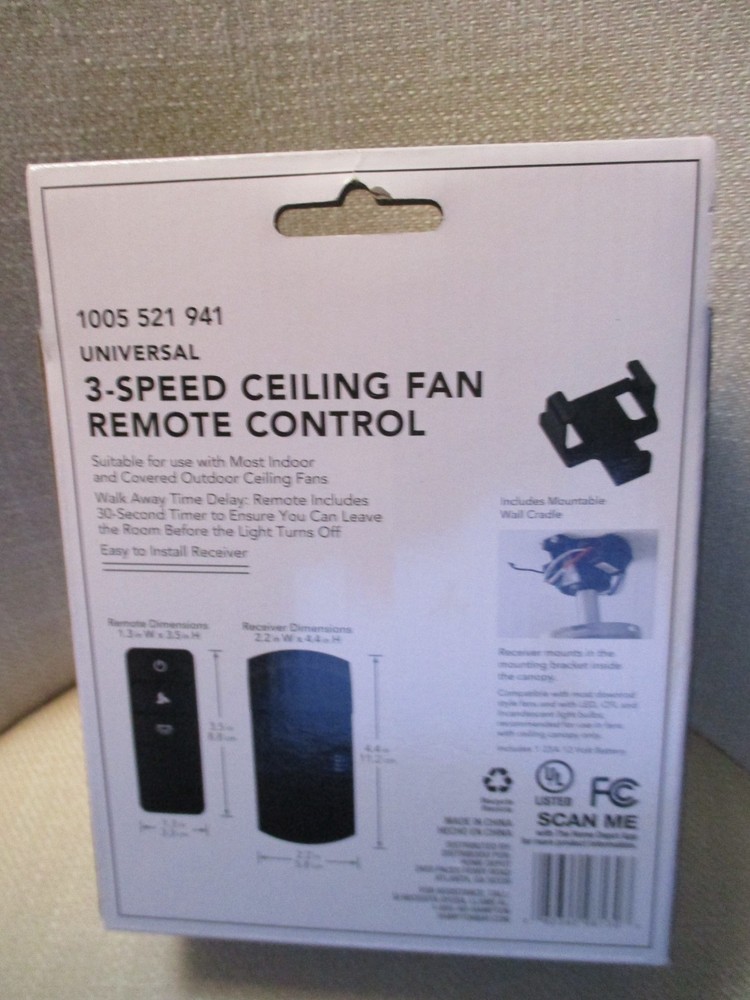 NEW Hampton Bay Universal 3-Speed Remote & Reciever Black COMPLETE