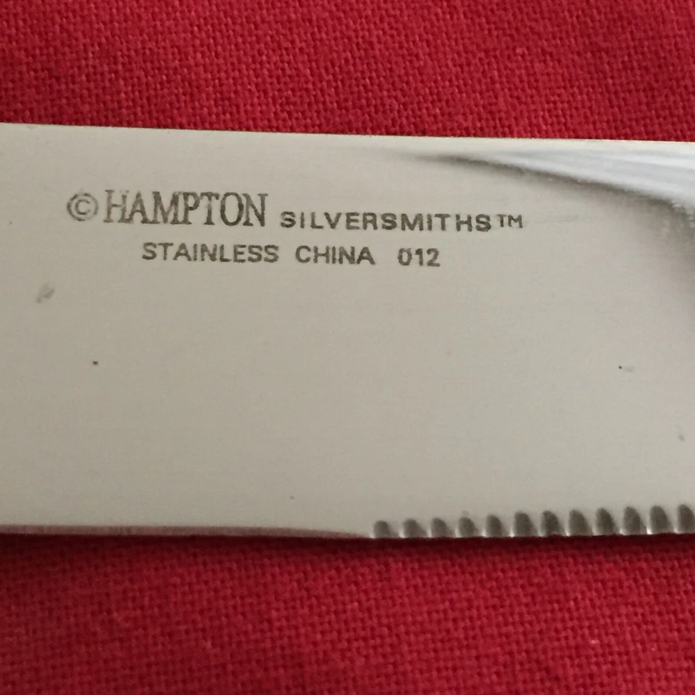 Manufacturer: Hampton Silversmiths Pattern: Shangrila Type: Stainless Steel Piece: Dinner Knife Length: 8 7/8"