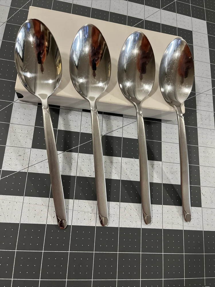 Hampton Silversmiths HSV190 Stainless Flatware (4) Oval Spoons Frosted / Glossy