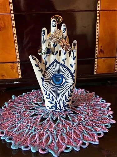 Hamsa Ring Holder Aesthetic Room Decor, Hamsa Hand with Blue Evil Eye Boho