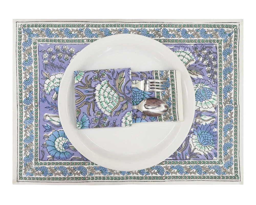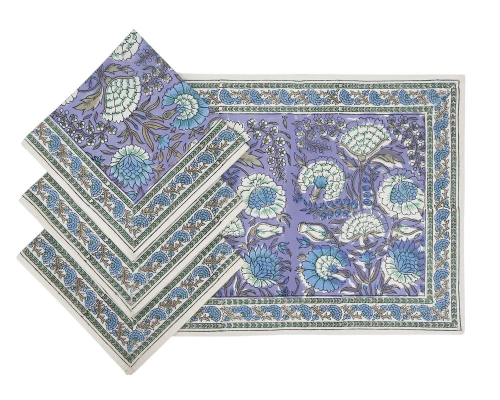 Colorful Indian Hand Block Printed Cotton Table Napkins in Green & Blue