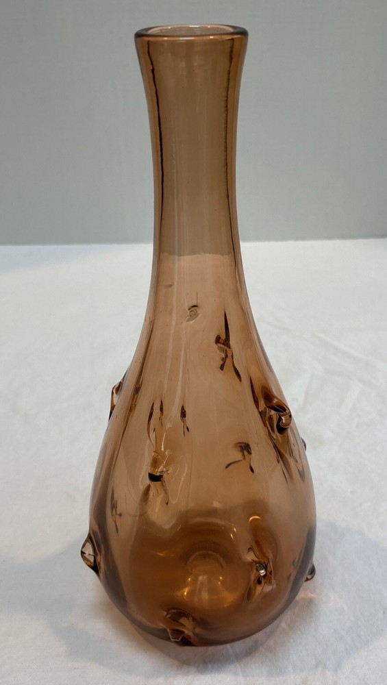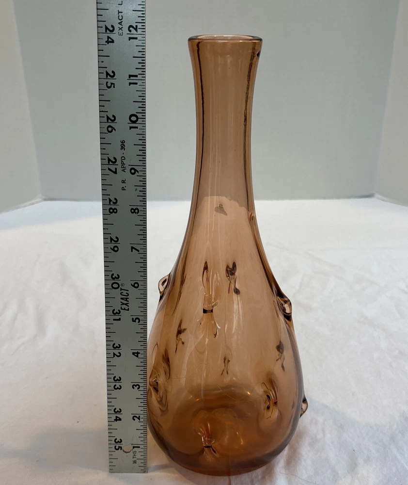 Hand Blown Glass Vase Amber/rose/pink 12” Inch. See photos.