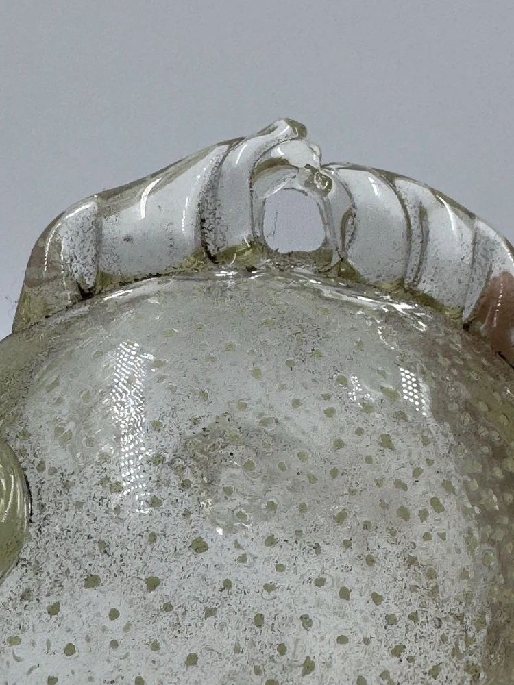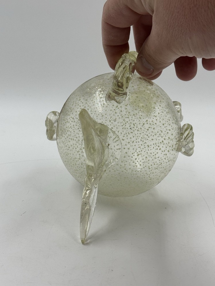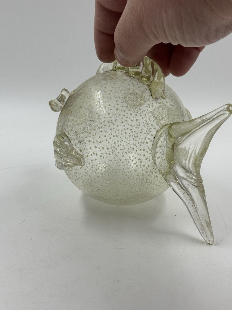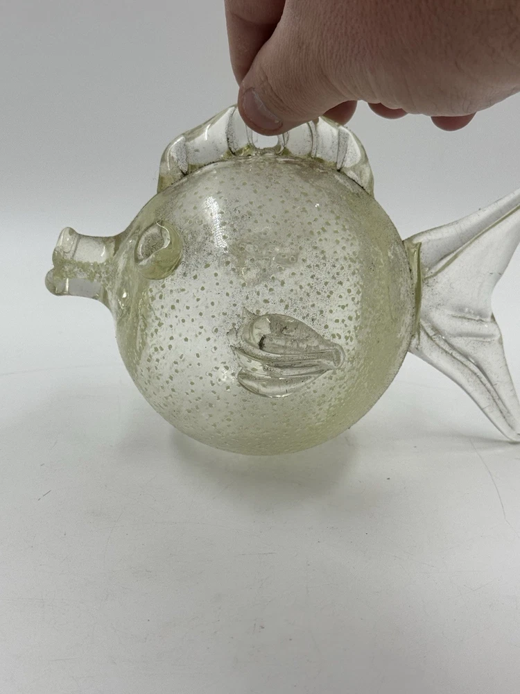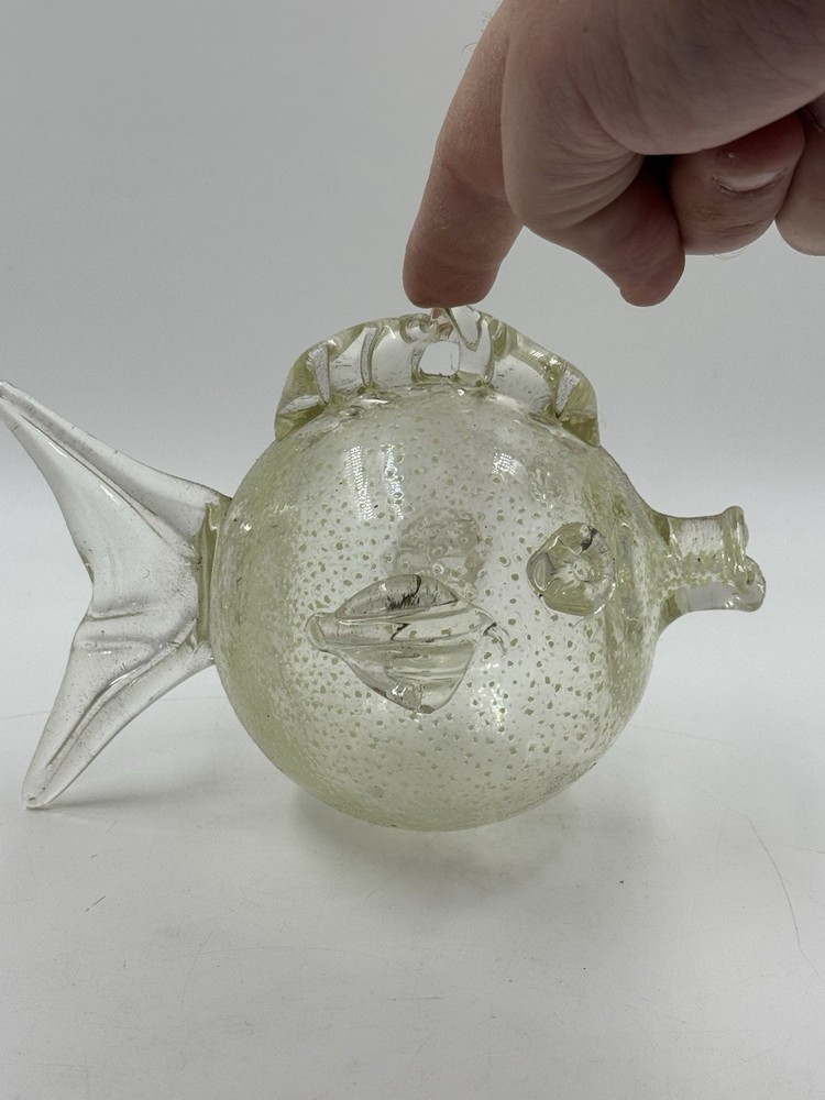 Hand Blown Art Glass Ornament Suncatcher Hanging Blow Fish Clear Green Specs 4”