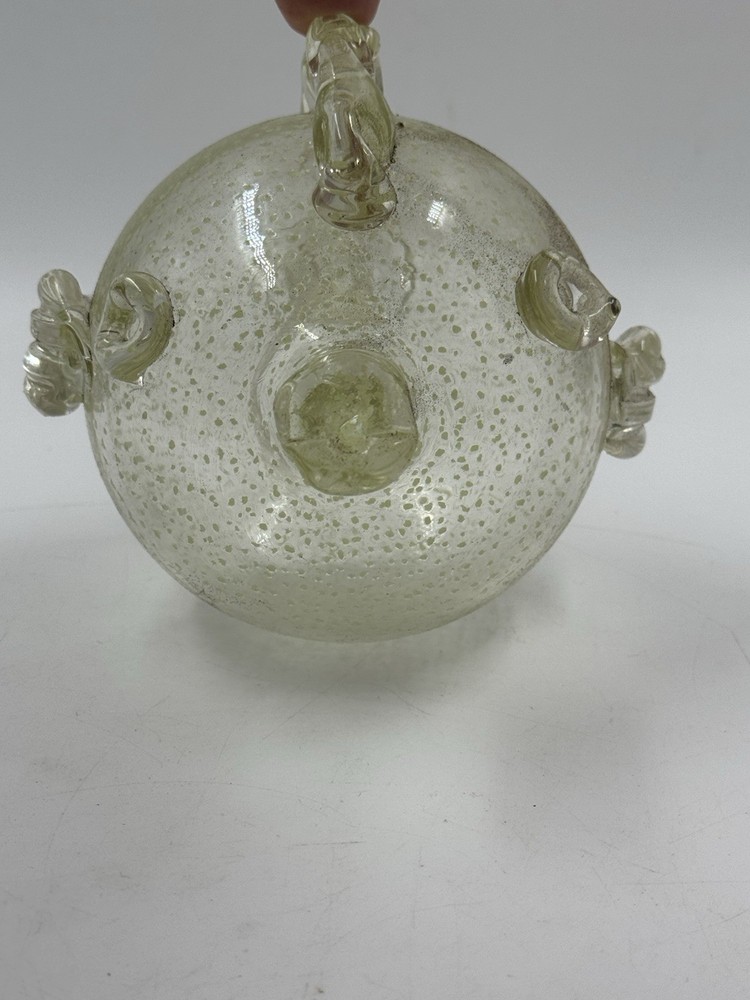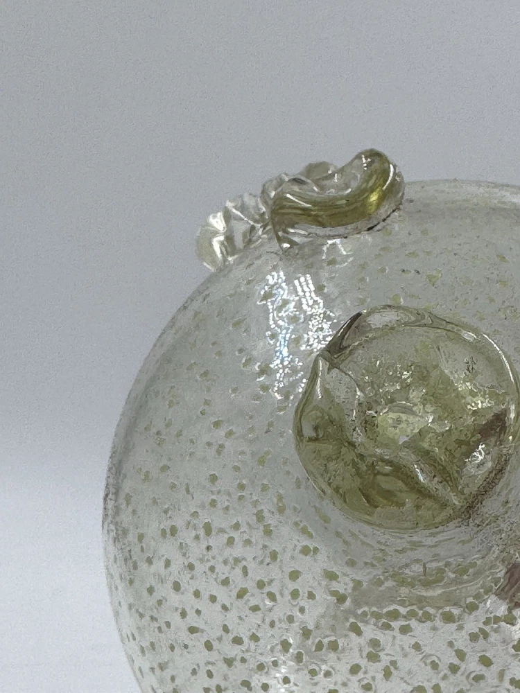 HomeHand Blown Art Glass Ornament Suncatcher Hanging Blow Fish Clear Green Specs 4”