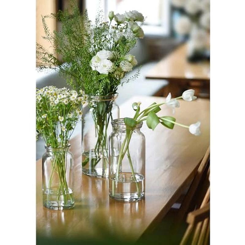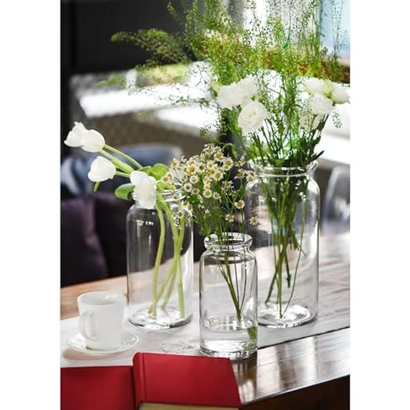 About this item 【HAND BLOWN STUDIO GLASS 】Handcrafted Double Edge Finish,Hand blown Glass By CASAMOTION Studio. 【ORIGINAL DESIGN GLASS] Simple Clear Milk Bottle Shape,Vases For Flowers Centerpiece Tabletop. 【MODERN FARMHOUSE STYLE】Easy to Decorate Your Kitchen Island Dining Room Table,Room Decor Floral Vase For your Living Room Coffee Bar. 【VINTAGE SHAPE SET OF 3] Small Medium Tall Cylinder,8"10"12" Inch Height Modern Vases for your Like. [PACKAGE & SERVICE] Set Of 3 ,Customized Polyfoam Package. Material Glass Color Clear Set of 3 Brand CASAMOTION Product Dimensions 5. 4"L x 5. 4"W x 11. 8"H Shape Bottle,Cylinder,Modern