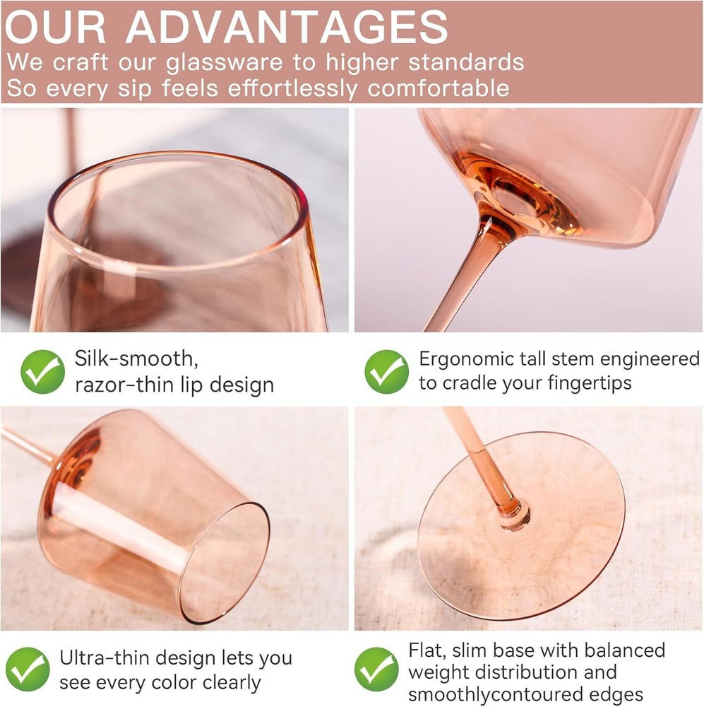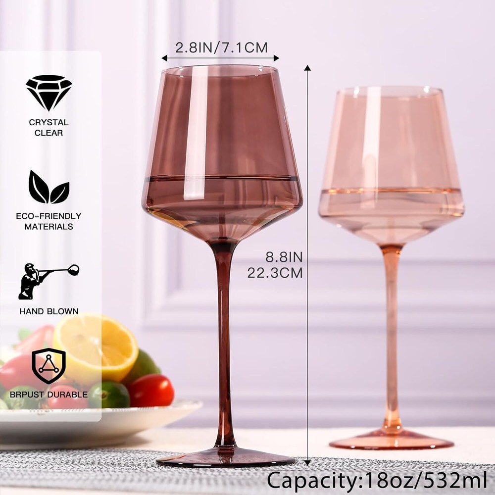 【Venus Series Glassware】This 6-piece set of hand-blown wine glasses comes in a stunning array of colors, each glass uniquely beautiful. Whether you’re hosting a casual gathering or a sophisticated event, these glasses add a splash of elegance and fun to your table. Perfect for red wine, white wine, rosé, and more, they ensure every sip is a celebration. 【Luxurious Design with Italian-Inspired Quality】Crafted from high-quality, lead-free Italian-style glass, these crystal colored wine glasses are a testament to modern elegance. The hand-blown technique ensures each glass is a masterpiece, with meticulous attention to detail that guarantees a flawless finish. The tall, sleek silhouette commands attention, making them the centerpiece of your home bar. 【Large18 Oz Colored Wine Glasses Set】 18oz wine glasses are designed to enhance your drinking experience. With a capacity larger than standard glasses, you can enjoy more of your favorite wines comfortably. These glasses are perfect for a variety of beverages, from classic wines to fruit punches and classy cocktails, making them indispensable for any festive occasion. 【Ergonomic Design for Enhanced Wine Tasting】The ergonomic design of these glasses features golden curves and a unique bowl shape that stands out. The flat, thin bottom and smooth center of gravity ensure stability, while the right angle and bell-shaped bowl facilitate easy aeration and swirling, elevating your wine-tasting experience to new heights. 【The Perfect Gift for Wine Lovers】Whether for a wedding, engagement, or any special event, this set of colored wine glasses makes a perfect gift. The stunning palette and elegant design are sure to delight any wine lover. Use them to add fun and sophistication to your parties, creating memorable moments with every toast.