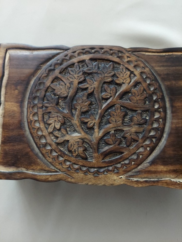 $ 2.22VINTAGE WOODEN TRINKET BOX WITH LID 6"in diam.