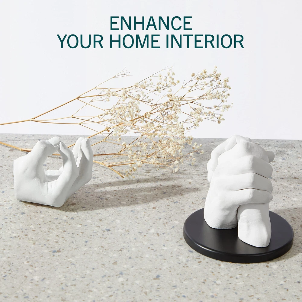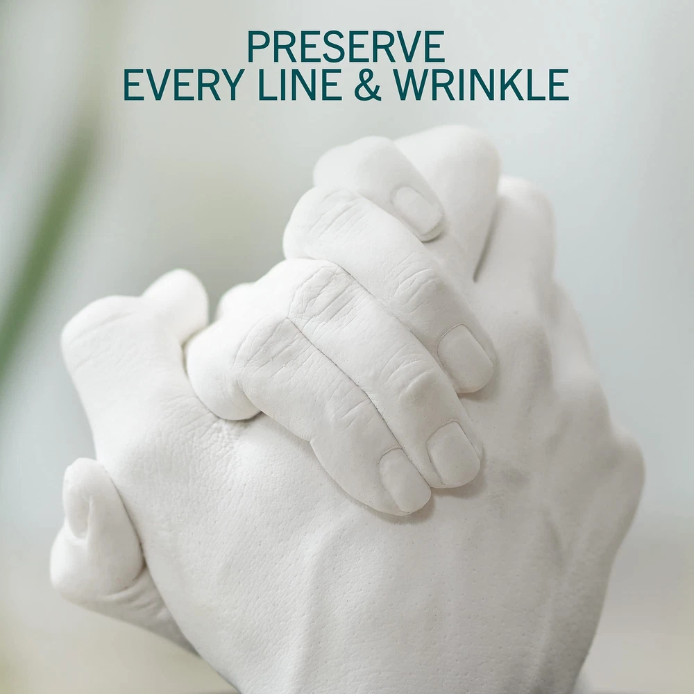 A UNIQUE GIFT - The 3D holding hands casting kit captures precious moments as a heartfelt gift. With this hand casting kit couples, best friends, siblings, or families can show their love for one another. NON-TOXIC & SAFE - Made from natural organic seaweed, our holding hands molding kit is sensitive skin-safe, biodegradable, & eco-friendly. The chip & stalk resistant plaster makes this clay hand molding kit for family a lasting memento. A COMPLETE KIT - The keepsake couples hand molding kit has everything to make lovely hand molds, including powders, 2 mixing buckets, & detailing sticks. After completing your hand molding kit for couples, display it with the added elegant stand! HIGHLY DETAILED - The hand clay mold kit captures the smallest details & won’t harm jewelry, so you can keep important rings on. With this hand casting kit, family size memories are etched in time! EASY TO MAKE - Besides easy-to-follow instructions, this hand sculpture kit for 2 hands also includes a mini practice kit. Use it to create a tiny additional keepsake, like a pet’s paw imprint!