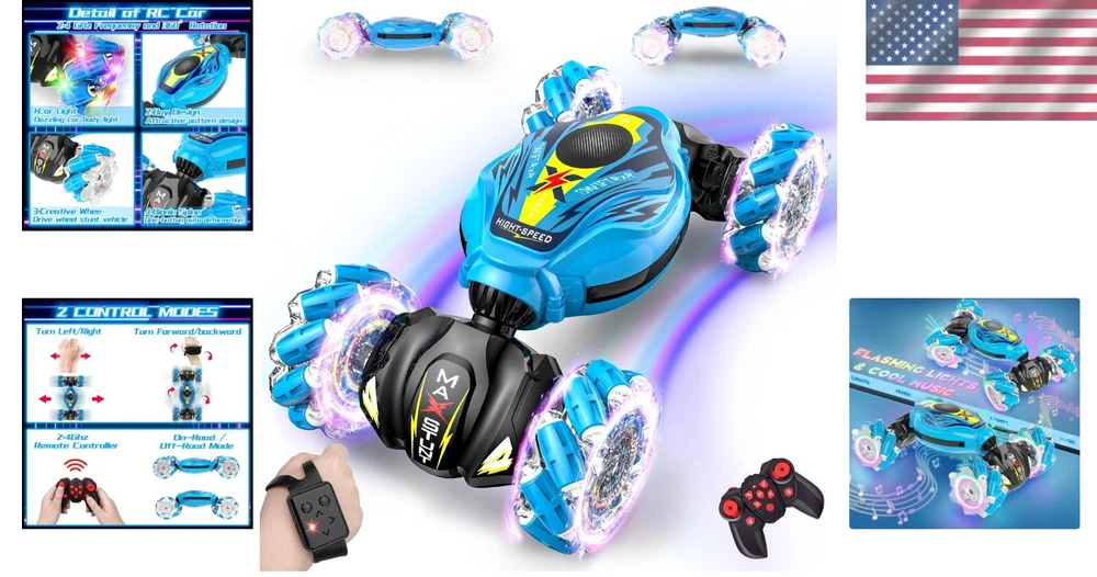 Hand Controlled Stunt Car with Light & Music - Perfect Gift for Kids Ages 3-12 ‹ › ‹ › ‹ › ‹ › ‹ › ‹ › ‹ › ‹ › ‹ › ‹ › Hand Controlled Stunt Car with Light & Music Perfect Gift for Kids Ages 3-12 Features: Two remote control methods: Gesture sensing and 2.4GHz remote control technology for sensitive, ultra-long-distance control. Colorful lights and cheerful music create an immersive experience for day or night driving. Full function with all-directional movement, 360° rotation, and twisting deformation. Sturdy, high-quality materials conquer various terrains like gravel, lawn, and sand. One-click display function shows all capabilities of the vehicle. Benefits: Exciting sensory experience with lights and music captivates children’s attention. Encourages the development of hand-eye coordination and motor skills through interactive control. Versatile use on all terrains provides endless opportunities for play and adventure. Designed with durability to withstand rough play, ensuring it lasts. Engaging for a wide age range, making it the perfect gift choice. Why choose our Hand Controlled Stunt Car? Looking for a thrilling gift that combines action, fun, and interactivity? Our Hand Controlled Stunt Car is ideal for kids aged 3-12, offering two exciting ways to control it. The gesture sensor technology allows them to perform stunts with their own movements, while the remote control provides extended range and sensitivity. Illuminate their world with dazzling lights and cheerful music, ensuring endless entertainment, whether indoors or outdoors. Give the gift of adventure and imagination this birthday, holiday, or special occasion – order your Hand Controlled Stunt Car today and watch their excitement unfold! Shipping Free & Fast Shipping - We offer free shipping to most of the USA with a normal delivery time of 3-7 days. However, due to the current situation, additional delivery time (up to 3 weeks) may be required for some items. Alternative Carriers - We may use alternative carriers (e.g. USPS, FedEx, UPS, etc.) to ensure your package arrives safely and on time. Due to the use of multiple carriers, we are unable to provide a tracking number automatically. Handling Time - Orders are processed and shipped within 1-2 business days of receiving cleared payment. Shipping Restrictions - Shipping to Alaska, Hawaii, Puerto Rico, Guam, and other US territories may incur shipping charges or delivery restrictions. Please contact us before ordering, or your order can be refunded/cancelled. State Restrictions - There may be restrictions based on your state of purchase. For example, certain items may not be shipped to California due to state regulations. Contact for Tracking Updates - If you require tracking updates or have any concerns about the delivery of your order, please feel free to contact us, and we will be happy to assist you. Return Please see our eBay Return Policy. Thank you. Payment We accept all major credit cards, PayPal, and Apple Pay for your convenience. Your payment information is secure and encrypted to ensure a safe and seamless transaction. Please complete your payment within 3 days of purchase to avoid any delays in shipping. Feedback Your feedback is extremely important to us. We strive to provide the best products and customer service possible. If you are satisfied with your purchase, please take a moment to leave us a positive review. If you have any concerns or issues with your order, please contact us before leaving negative feedback. We are committed to resolving any problems and ensuring your satisfaction. Contact Us If you have any questions or concerns, please feel free to reach out to our customer support team. You can contact us through the eBay messaging system. We are available Monday to Friday, 9:00 am to 5:00 pm EST, and we will do our best to respond to your inquiry within 24 hours. Thank you for supporting our small family business! UPC: Not Set MPN: Gesture_Sensing_RC_Stunt_Car Characteristics: Gesture Sensing RC Stunt Car Age Level: 12 Months & Under,3-4 Years,4-7,12-16 Years,17 Years & Up,8-11 Brand: Unbranded Type: Truck Scale: 1:10 Product Line: Not Set Model: Not Set Fuel Type: None Motor Type: Brushed 4WD/2WD: 4WD Color: Blue Recommended Surface: Off-Road & On-Road Model Grade: Not Set Required Assembly: Not Set Material: Plastic Vintage: Not Set Replica of: Not Set Country/Region of Manufacture: Not Set