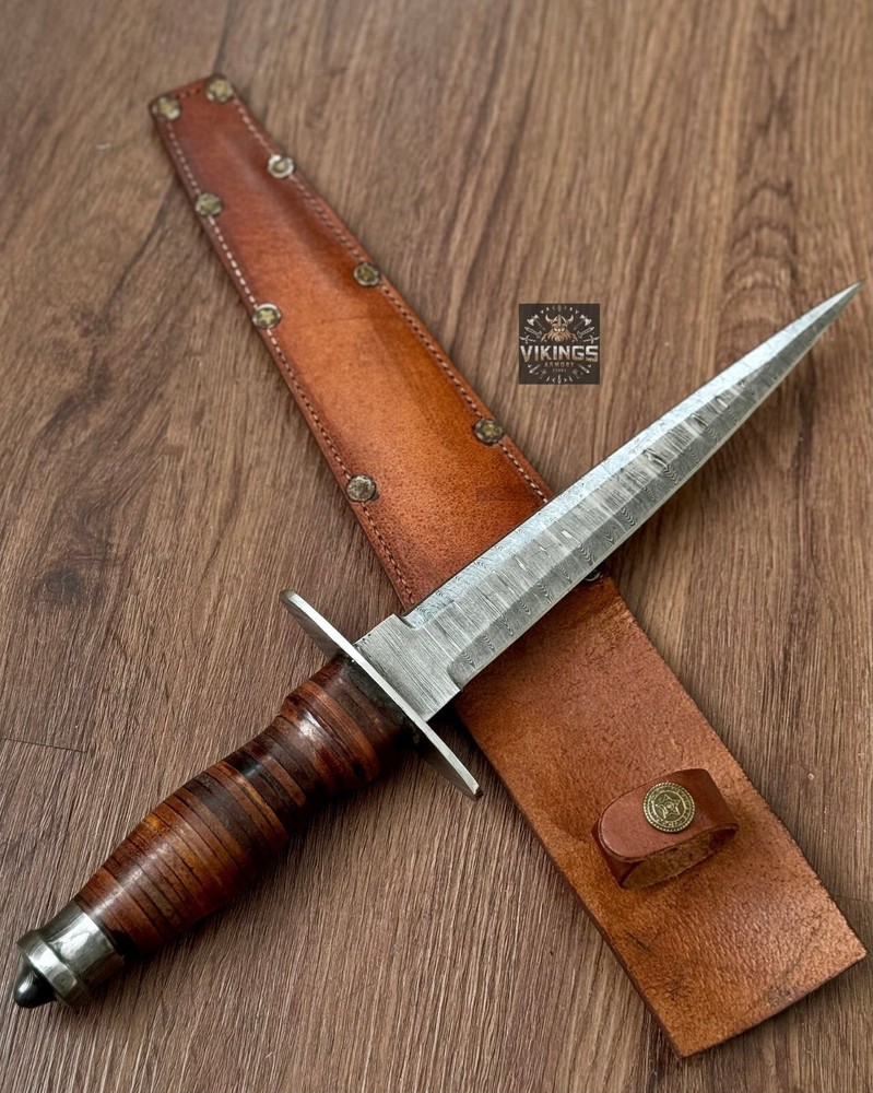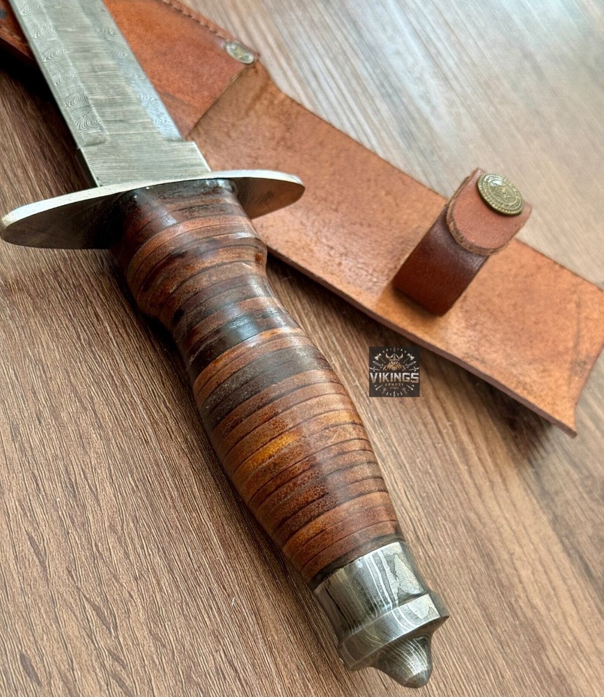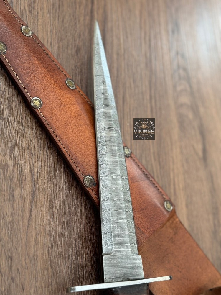 This hand forged Damascus Steel Dagger from Vikings Armory is a must-have for any knife enthusiast. With a blade length of over 5 inches and a plain edge, this drop point blade is perfect for hunting, survival situations, and everyday use. The blade is made of high-quality Damascus Steel and has a silver finish that adds to its aesthetic appeal. The dagger comes with a hidden tang and a wooden handle that provides a comfortable grip for ambidextrous dexterity. It also includes a sheath for easy storage and transportation. This original piece from Pakistan is a collectible fixed blade knife that is sure to impress. Overall Size Approximately 13 inches Handle Size Approximately 5 inches Blade Size Approximately 8 inches SHIPPING We use DHL or UPS normally. 5-7 Business days delivery and trackable easily. International shipping custom duty is paid by the customer, we are not responsible for the custom duties applied by your countries rules and regulations. For more queries contact us Customization Available Quality is Assure We deliver through DHL Please check Dhl Coverage area before placing order if your Address fall in DHL remote Area List You will have to pay $50 or change your Address Your satisfaction is very important for us if you have any issue contact us first before leaving any bad Review your issue will be resolved more efficiently ASAP Vikings_Armory
